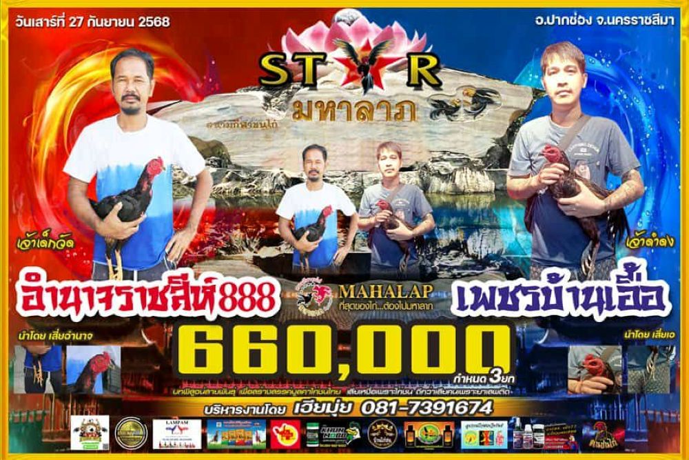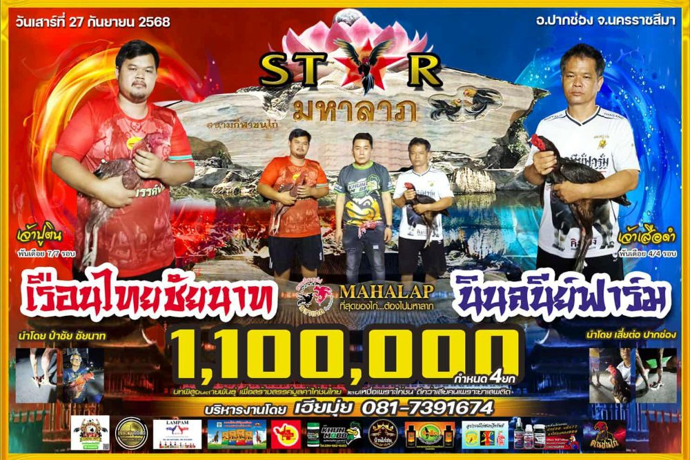โปรแกรม สนามชนไก่มหาลาภ วันเสาร์ที่ 27 กันยายน 2568