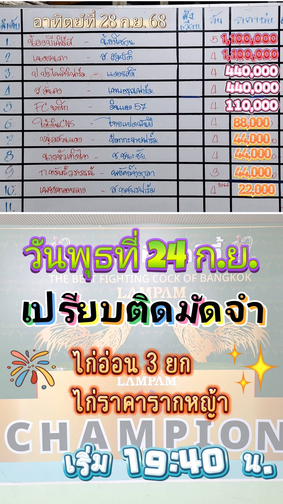 โปรแกรม สนามชนไก่เทิดไทซิตี้ วันอาทิตย์ที่ 28 กันยายน 2568