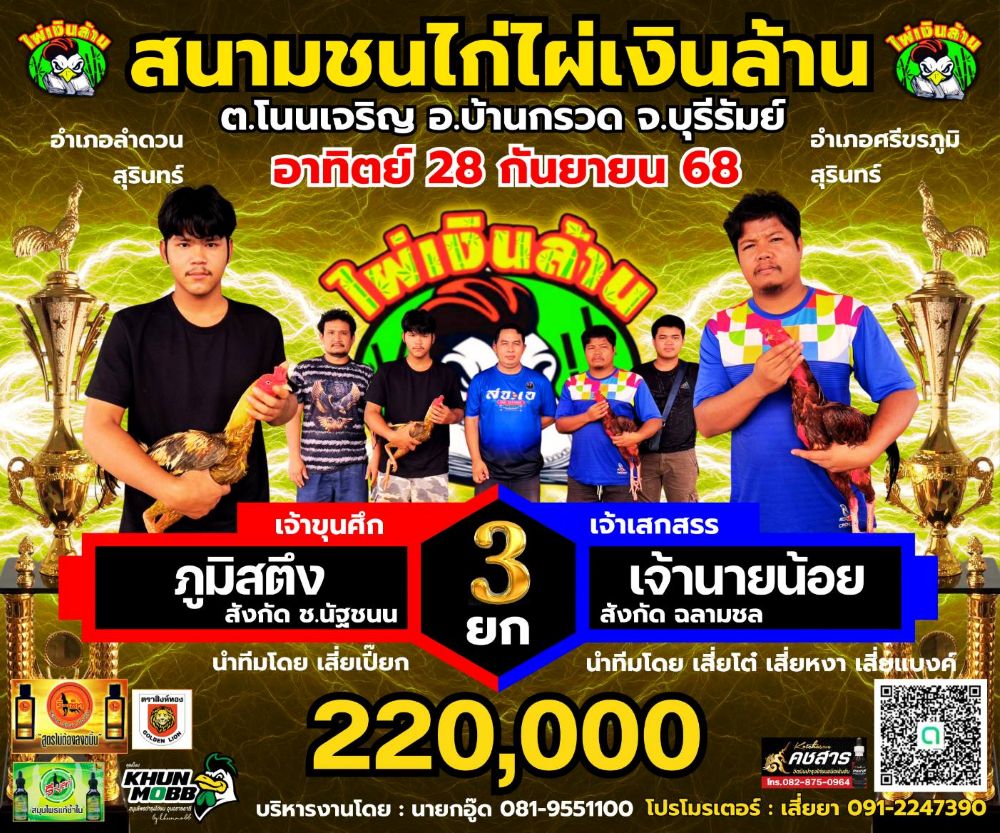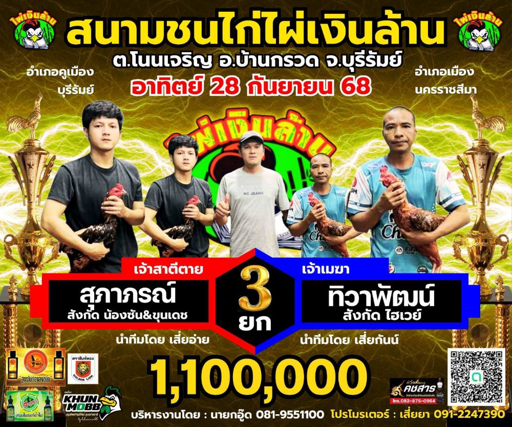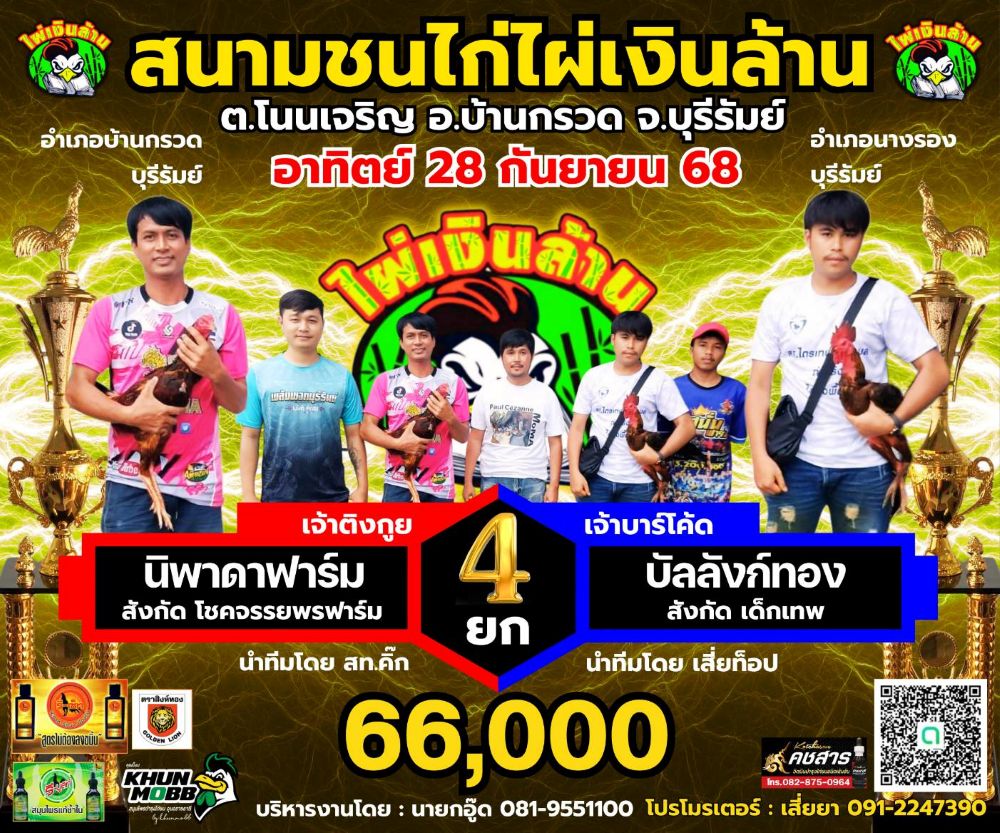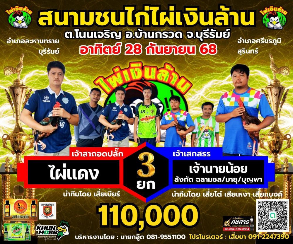 โปรแกรม สนามชนไก่ไผ่เงินล้าน วันอาทิตย์ที่ 28 กันยายน 2568
