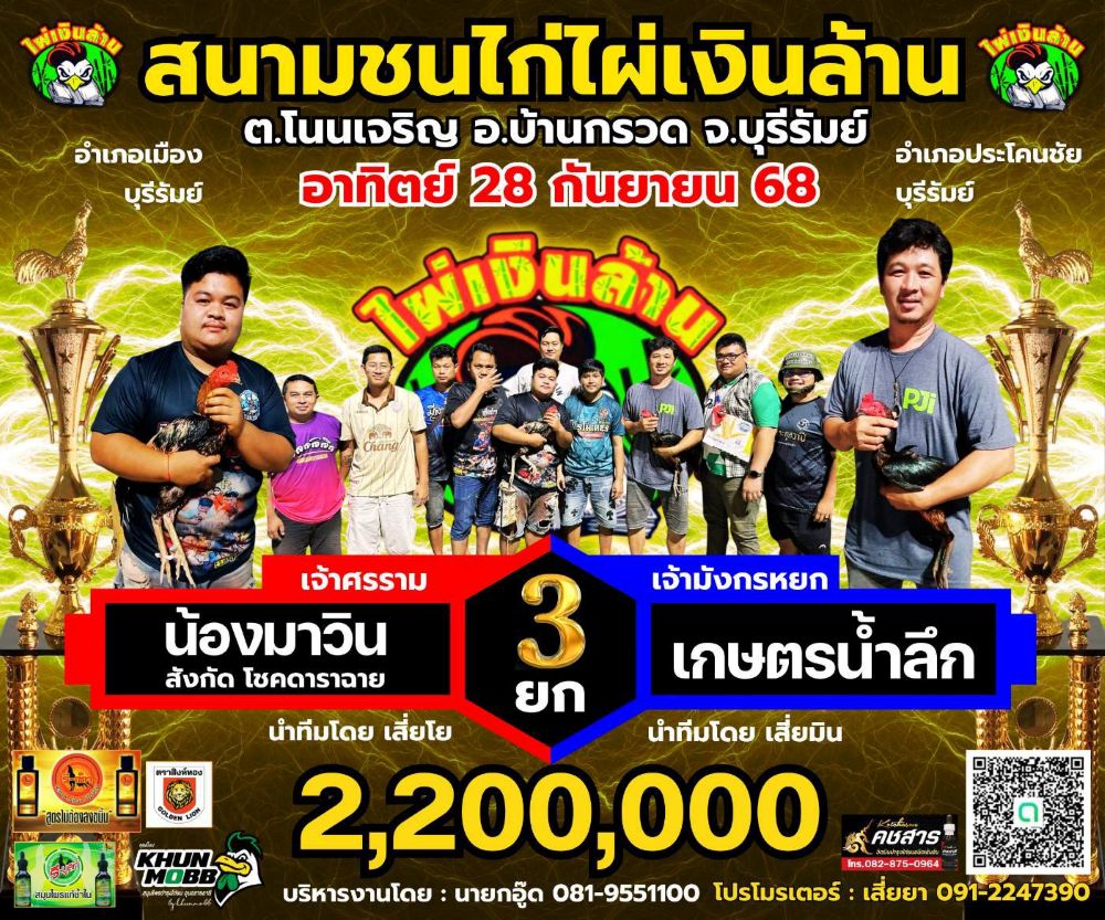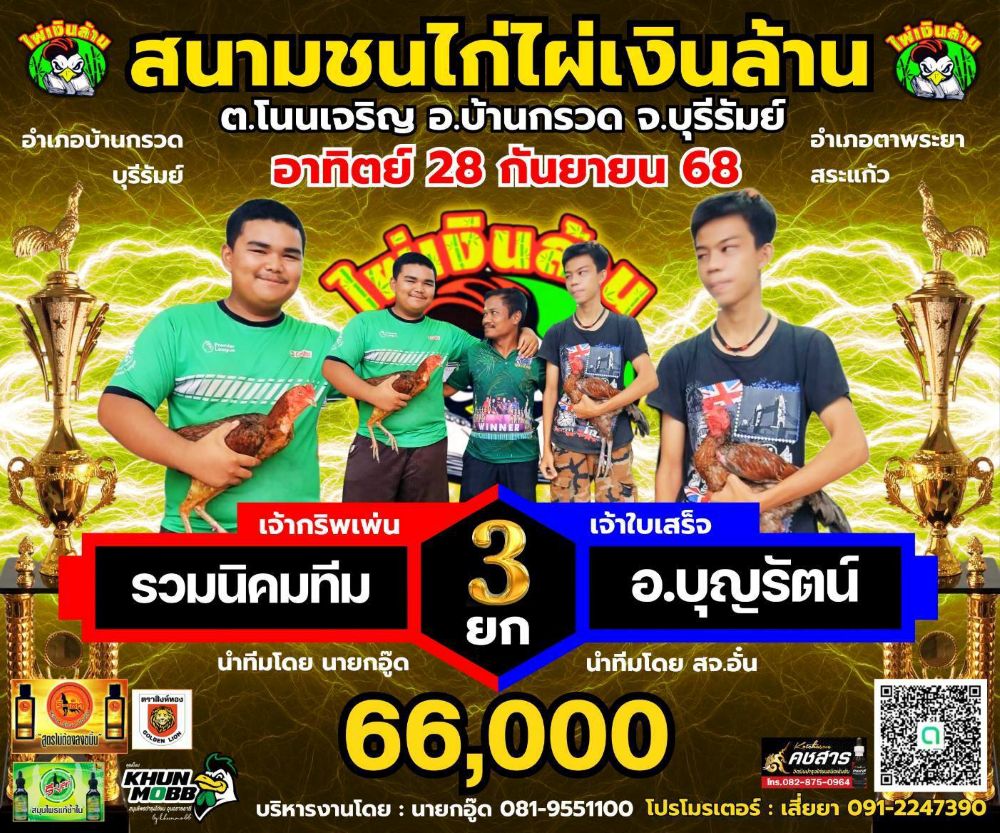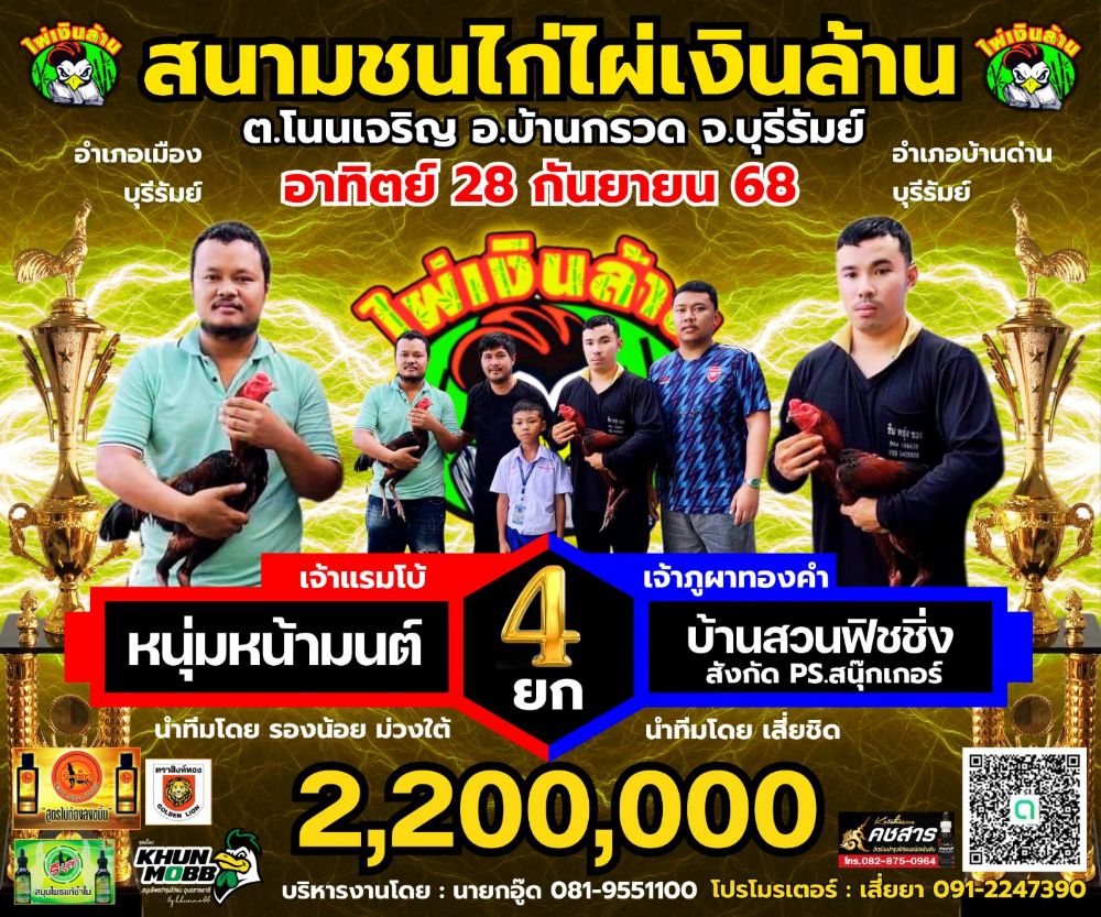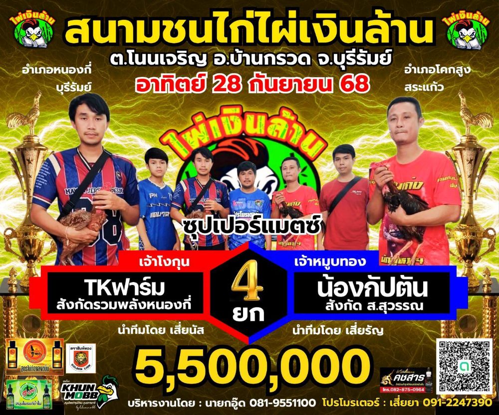 โปรแกรม สนามชนไก่ไผ่เงินล้าน วันอาทิตย์ที่ 28 กันยายน 2568