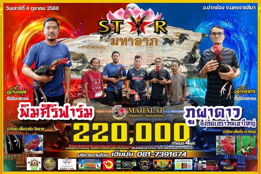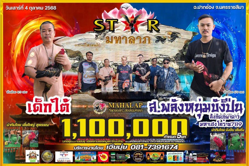 โปรแกรม สนามชนไก่มหาลาภ วันเสาร์ที่ 04 ตุลาคม 2568