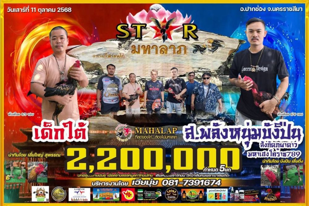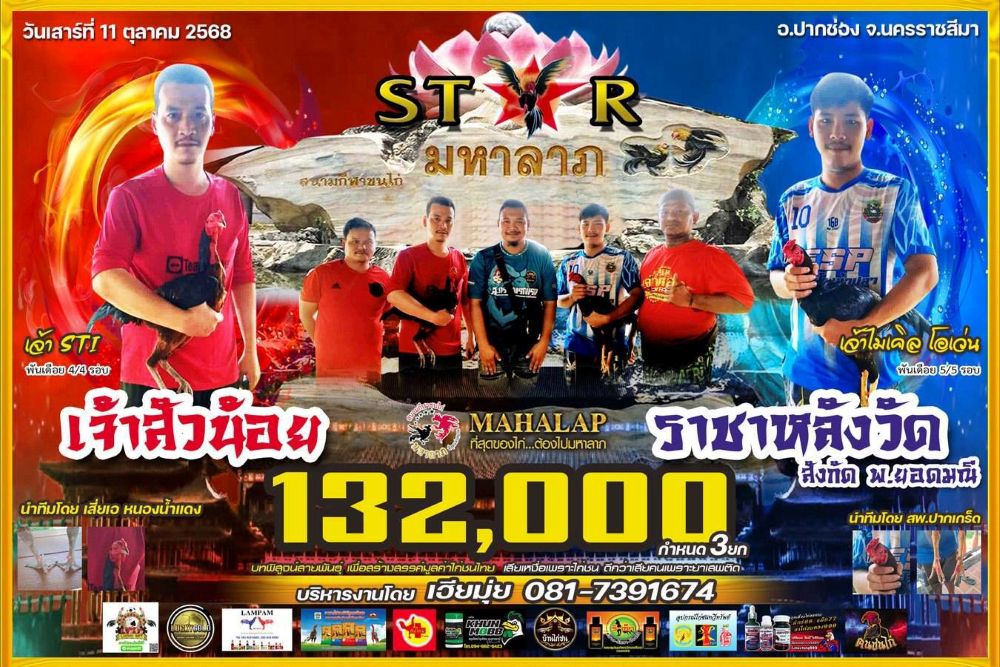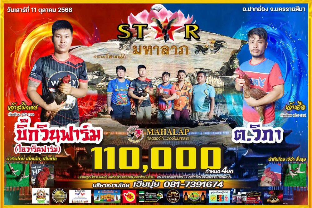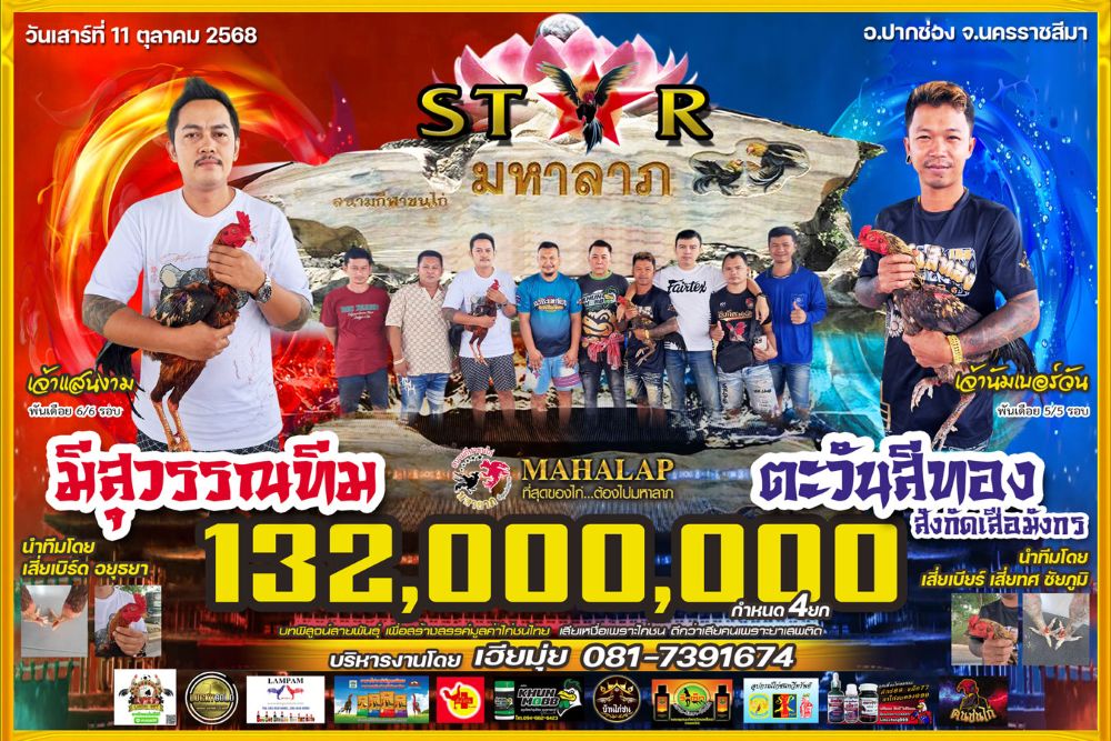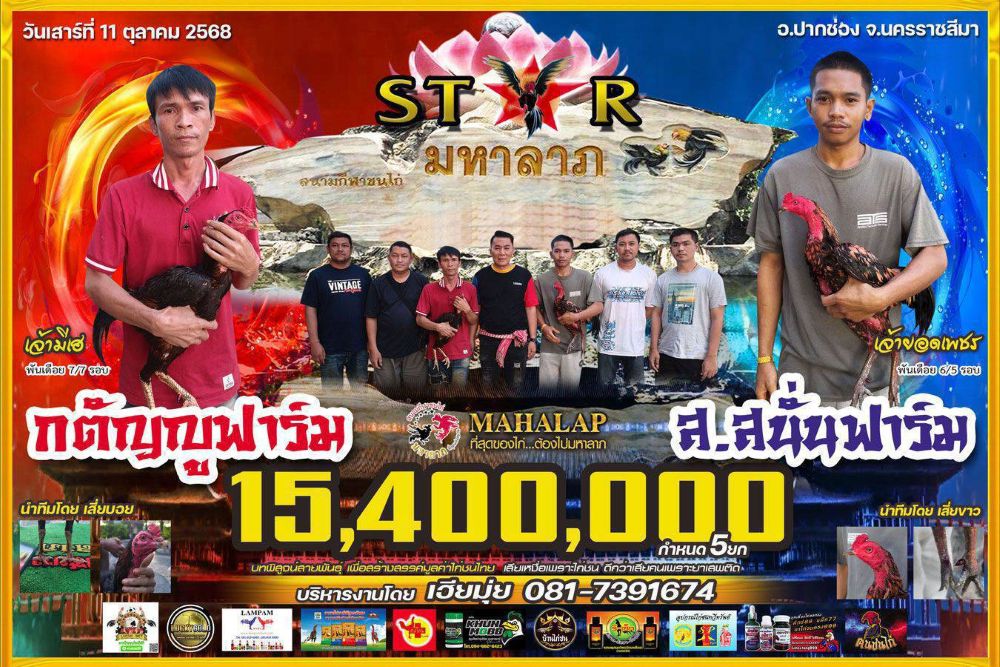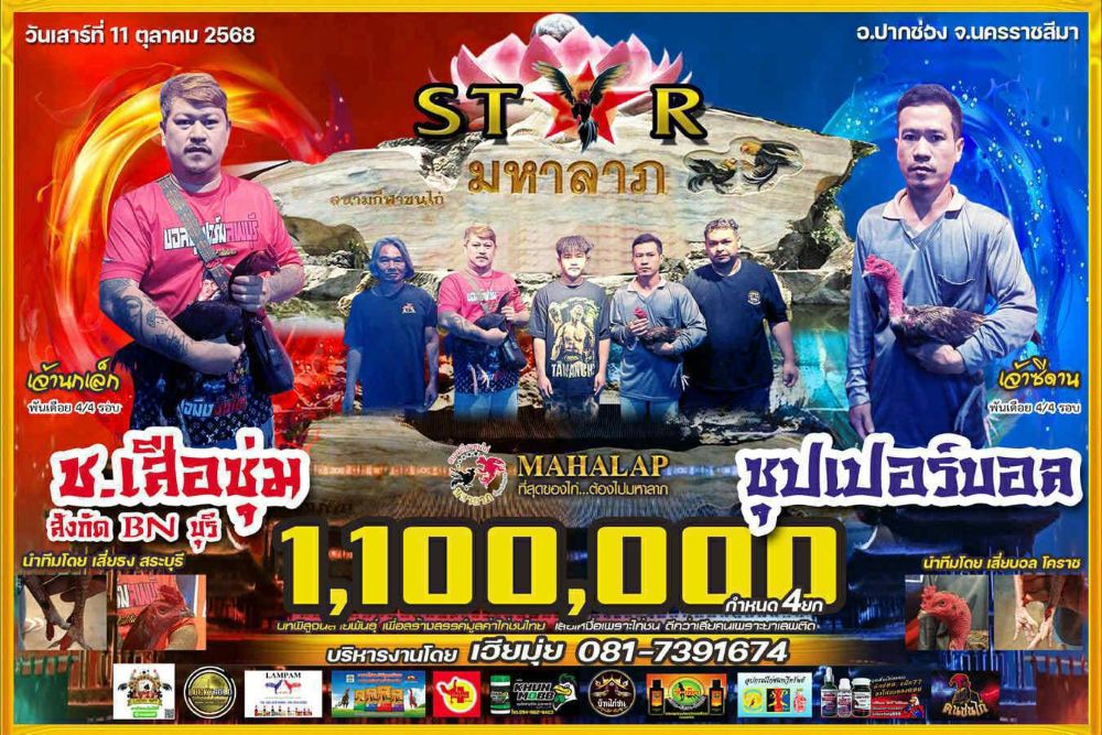 โปรแกรม สนามชนไก่มหาลาภ วันเสาร์ที่ 11 ตุลาคม 2568