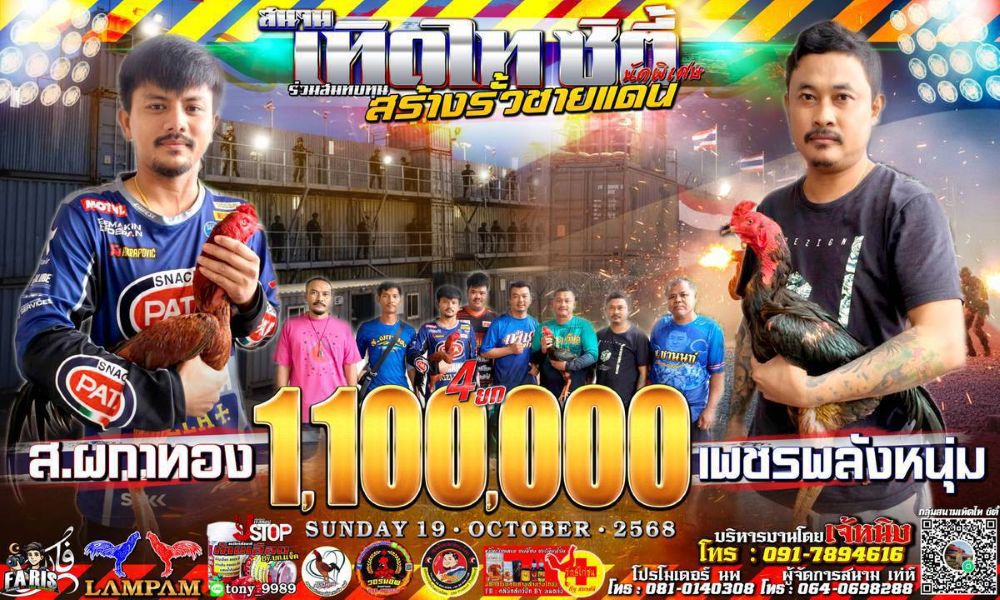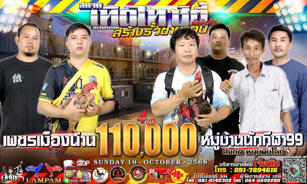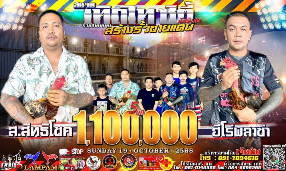 โปรแกรม สนามชนไก่เทิดไทซิตี้ วันอาทิตย์ที่ 19 ตุลาคม 2568