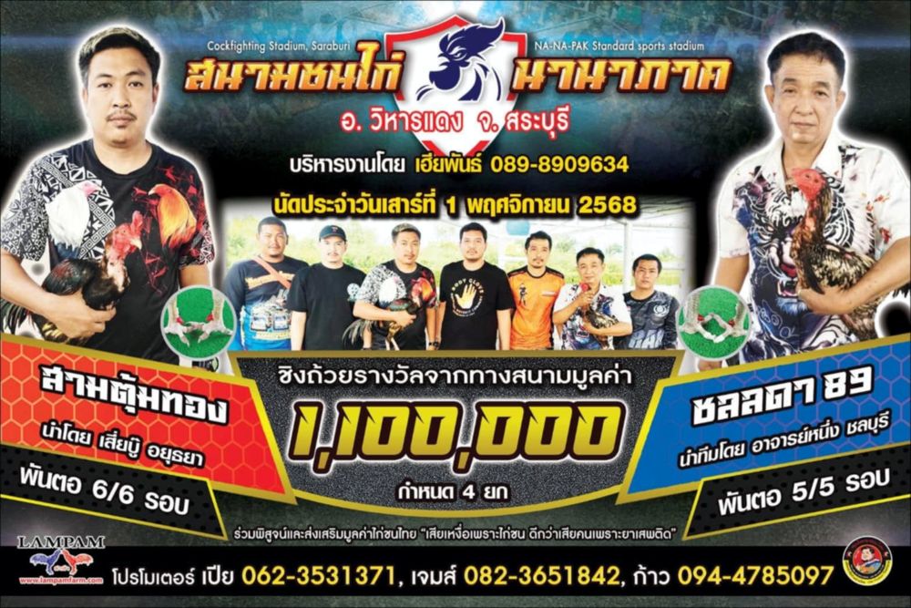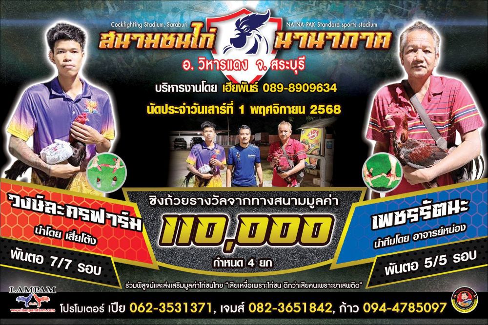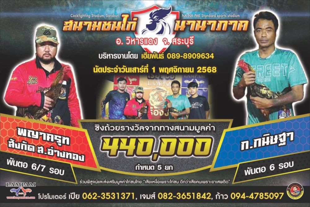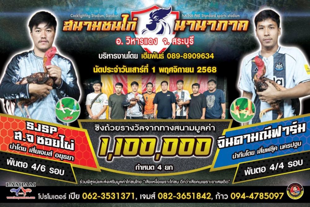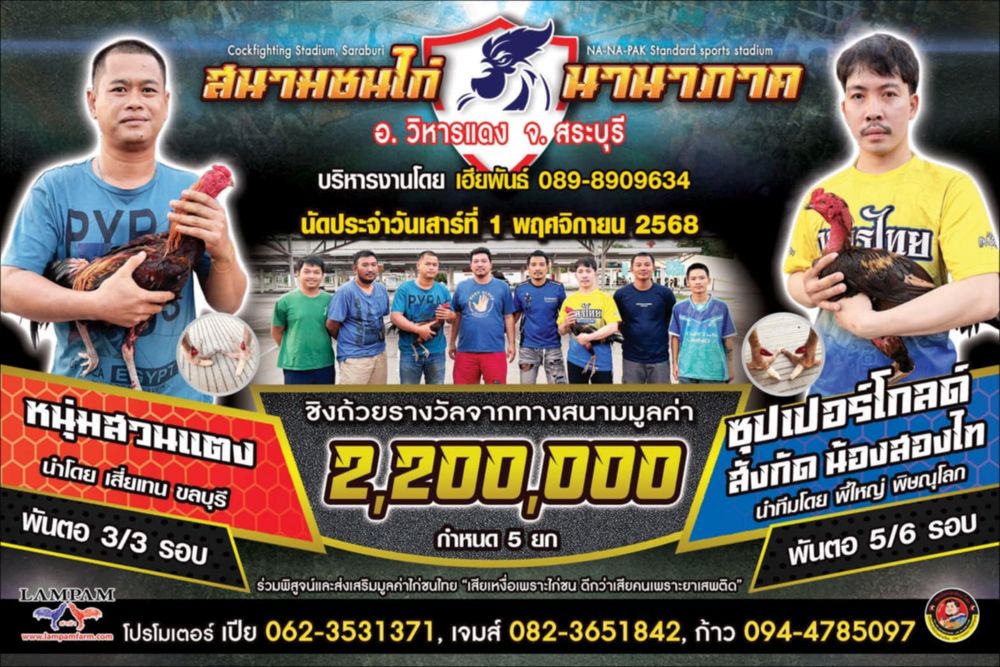โปรแกรม สนามชนไก่นานาภาควิหารแดง วันเสาร์ที่ 01 พฤศจิกายน 2568