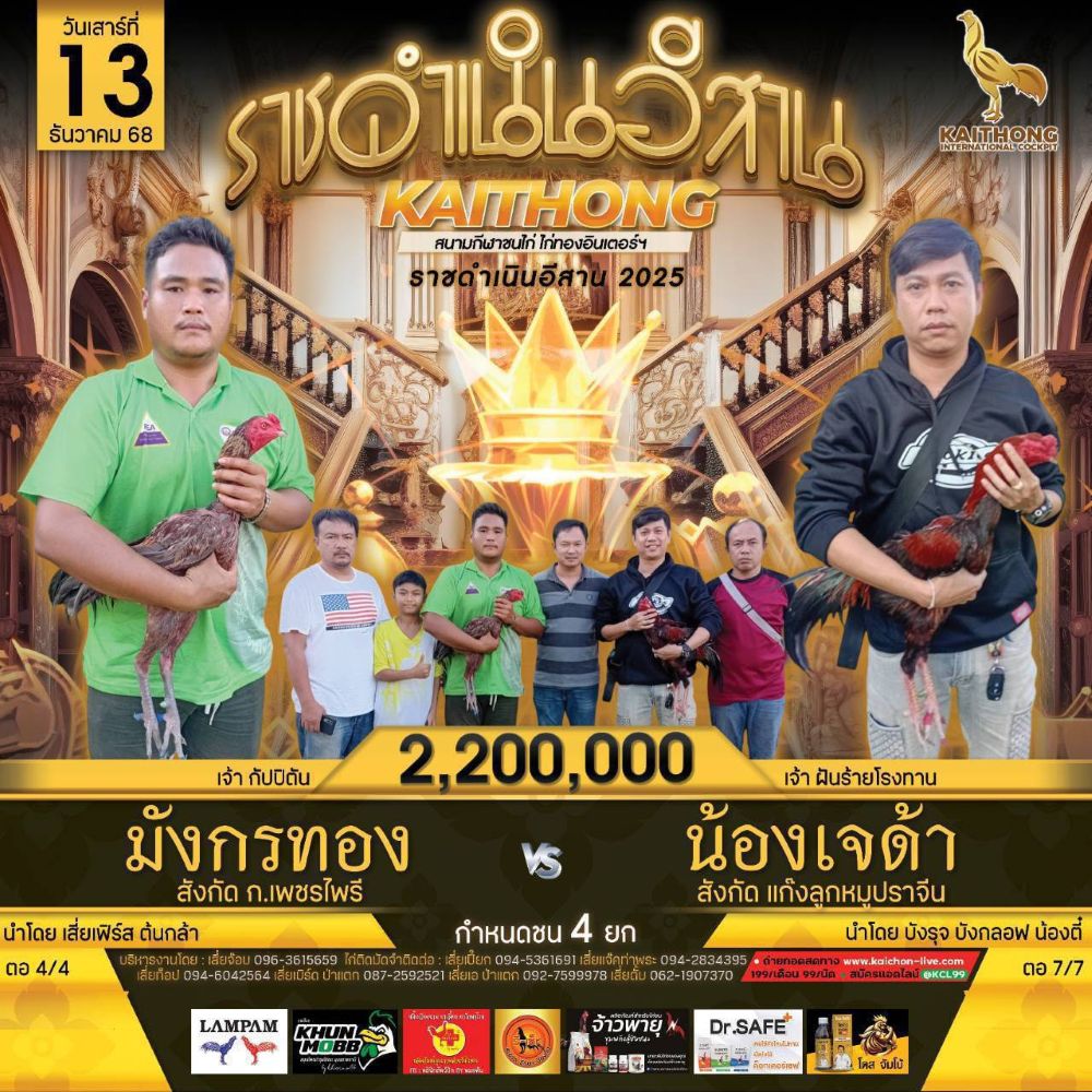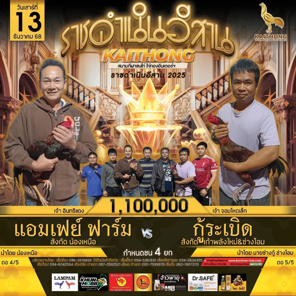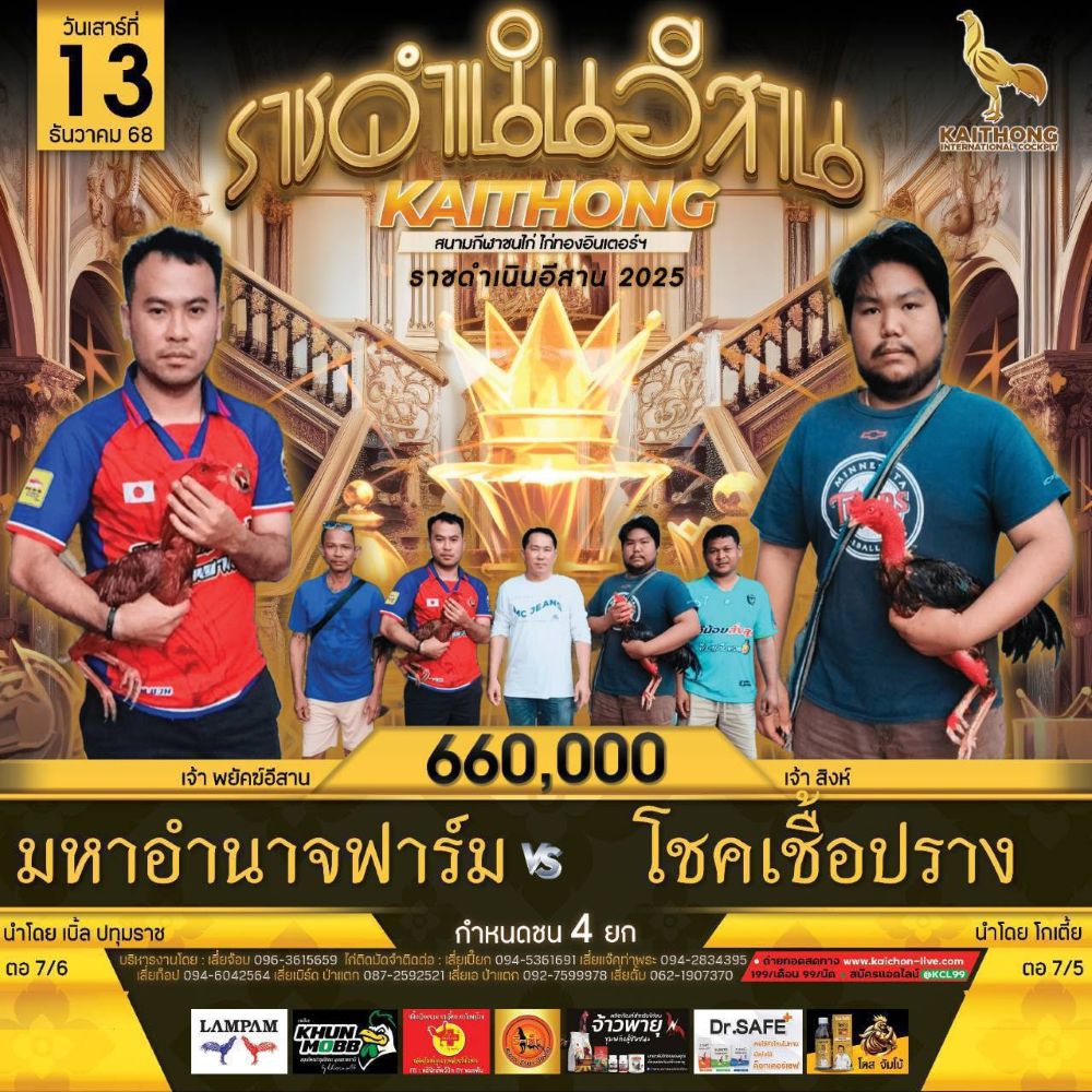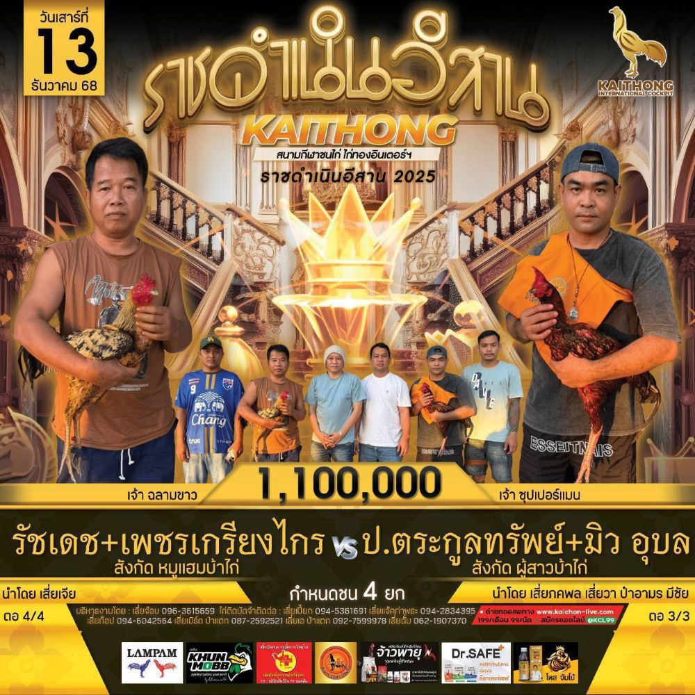 โปรแกรม สนามชนไก่ไก่ทองอินเตอร์ฯ วันเสาร์ที่ 13 ธันวาคม 2568