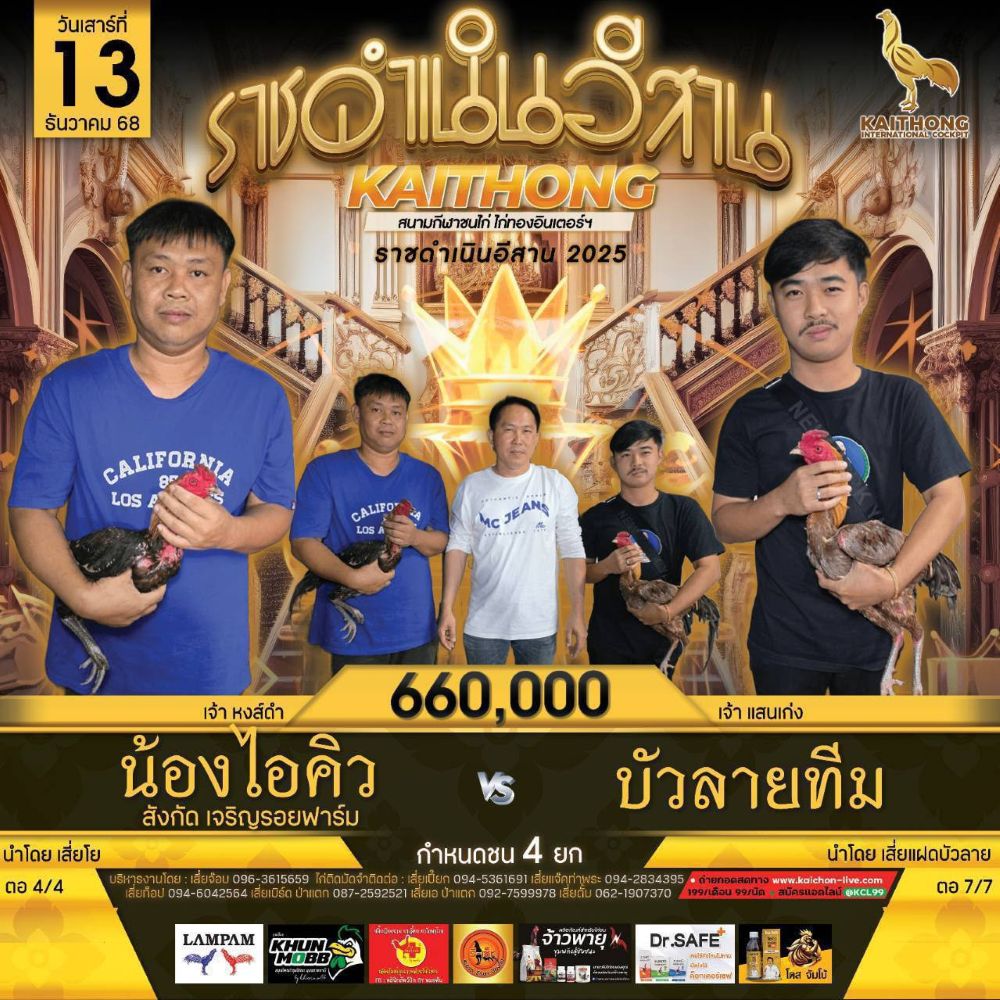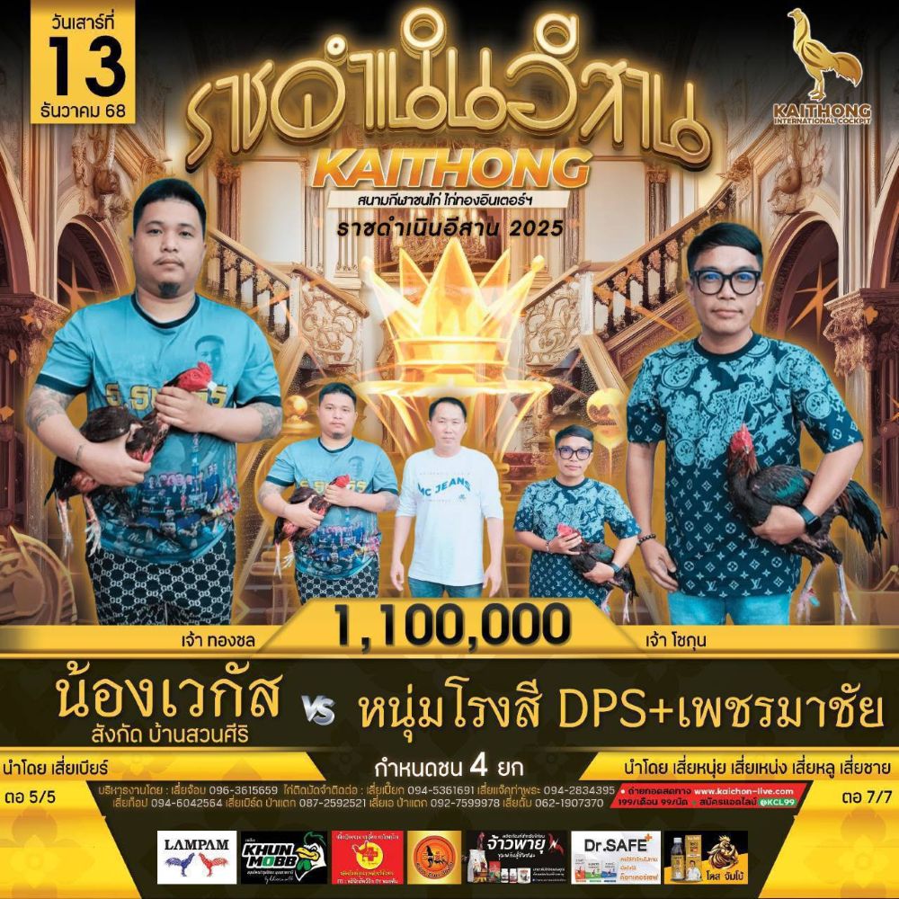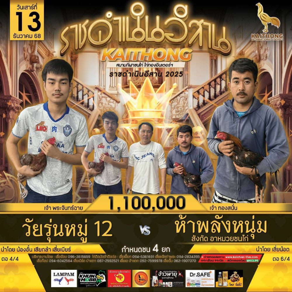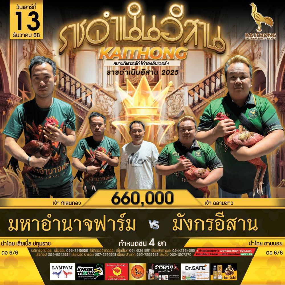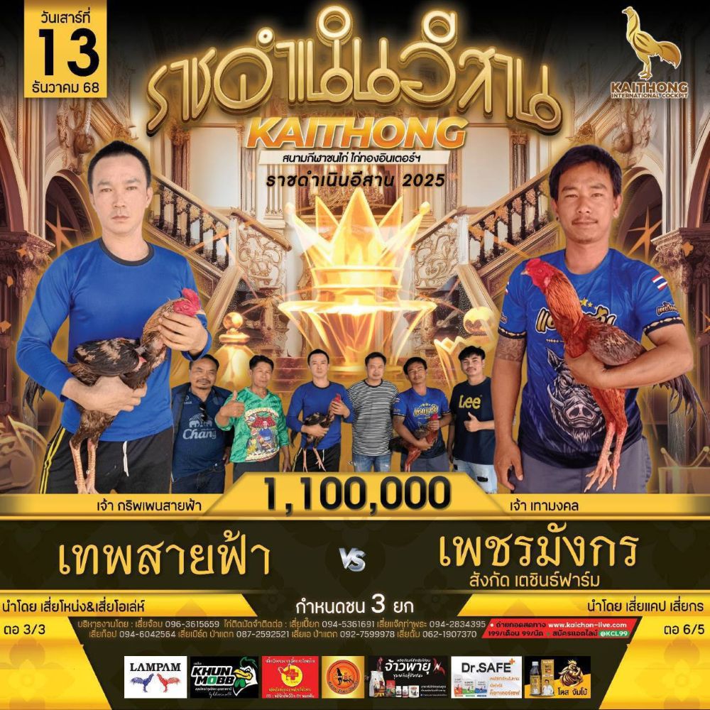 โปรแกรม สนามชนไก่ไก่ทองอินเตอร์ฯ วันเสาร์ที่ 13 ธันวาคม 2568