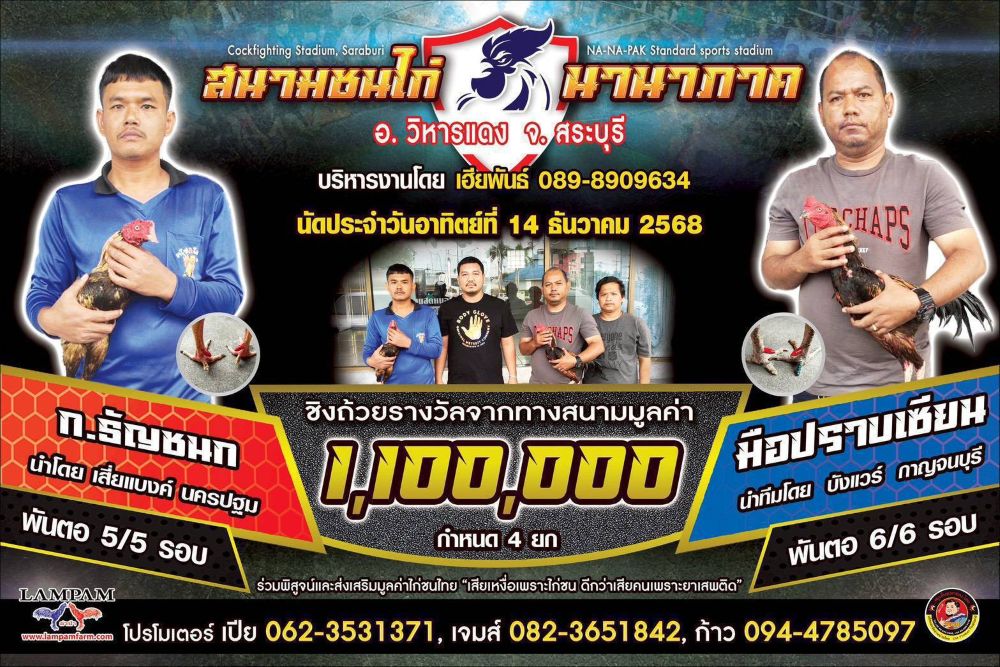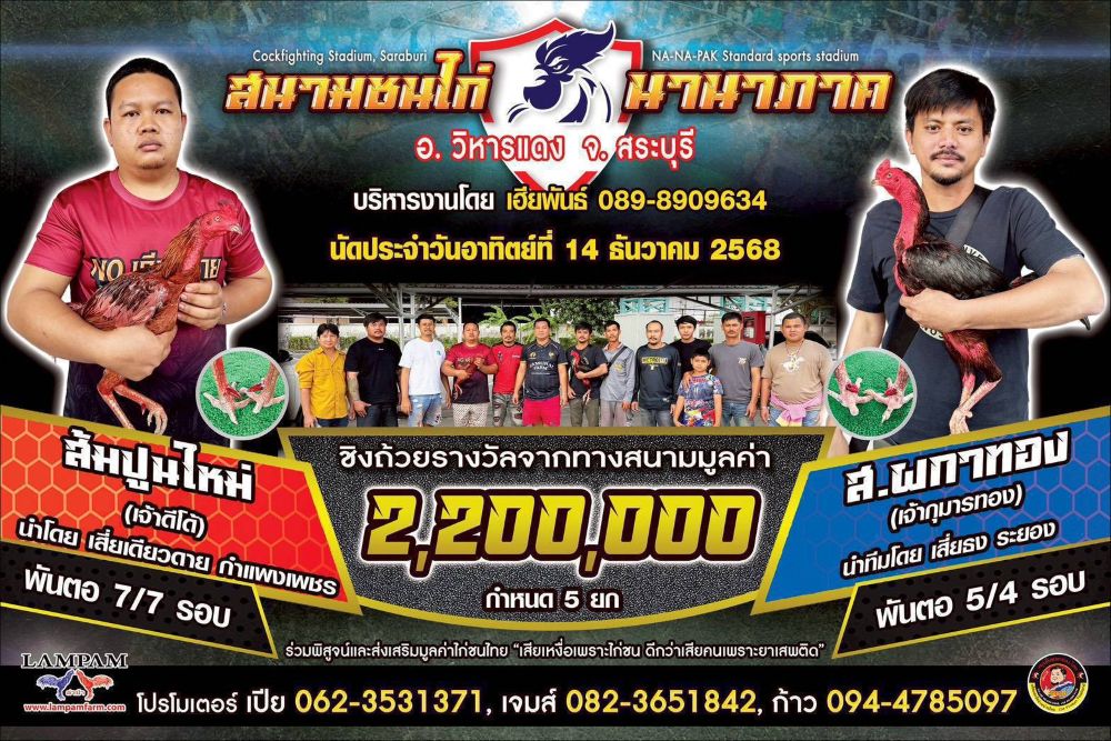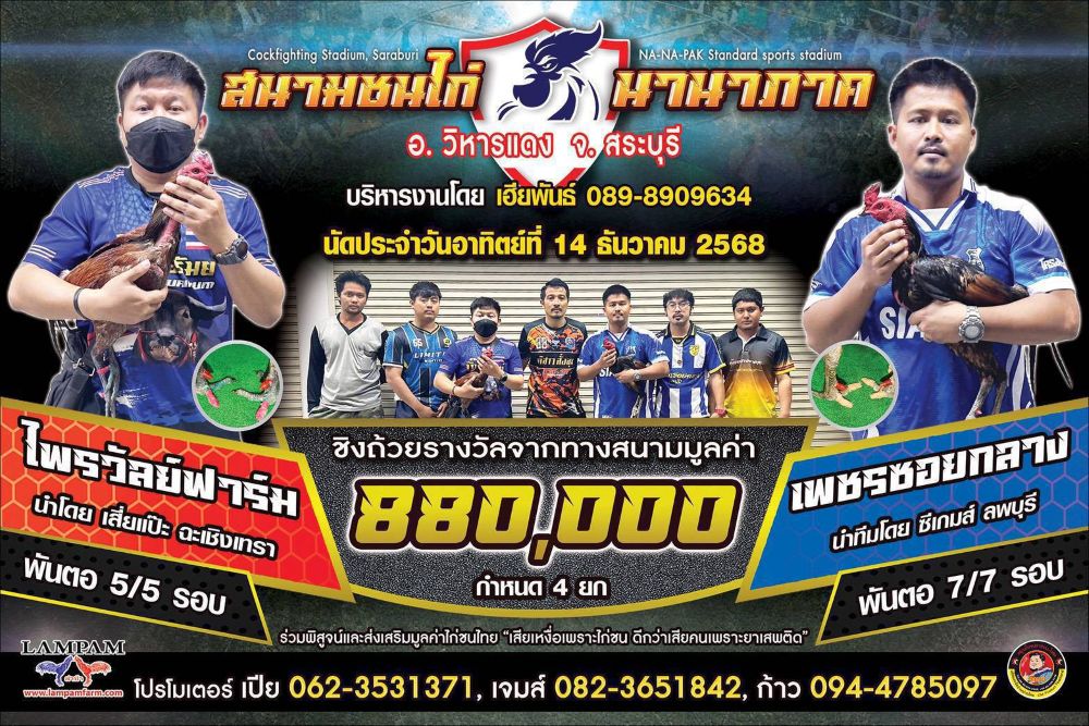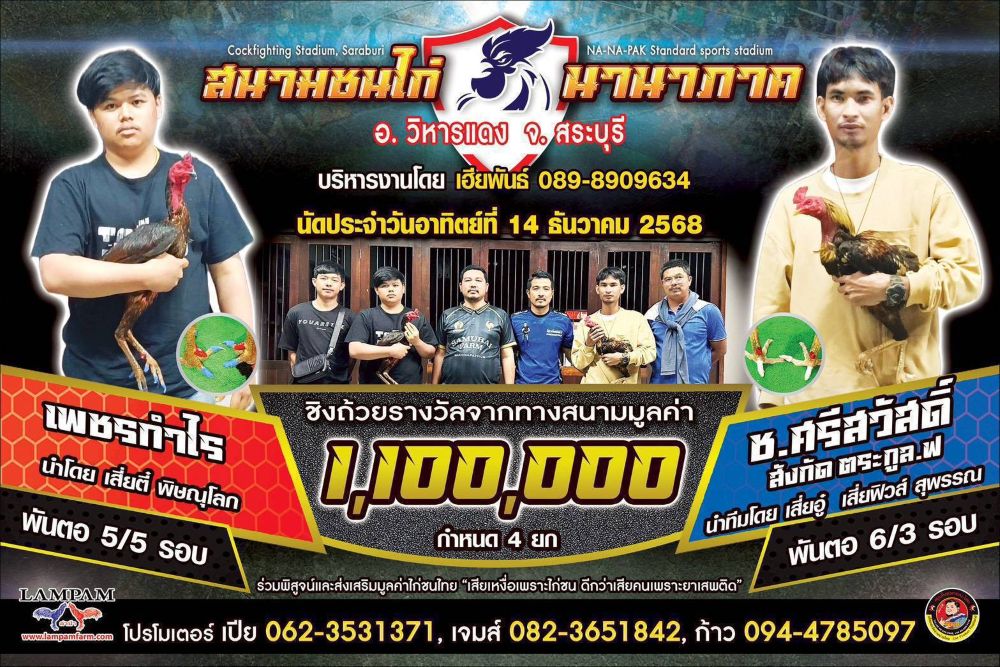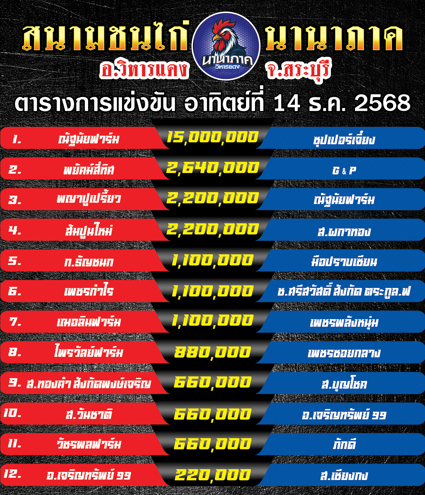 โปรแกรม สนามชนไก่นานาภาควิหารแดง วันอาทิตย์ที่ 14 ธันวาคน 2568