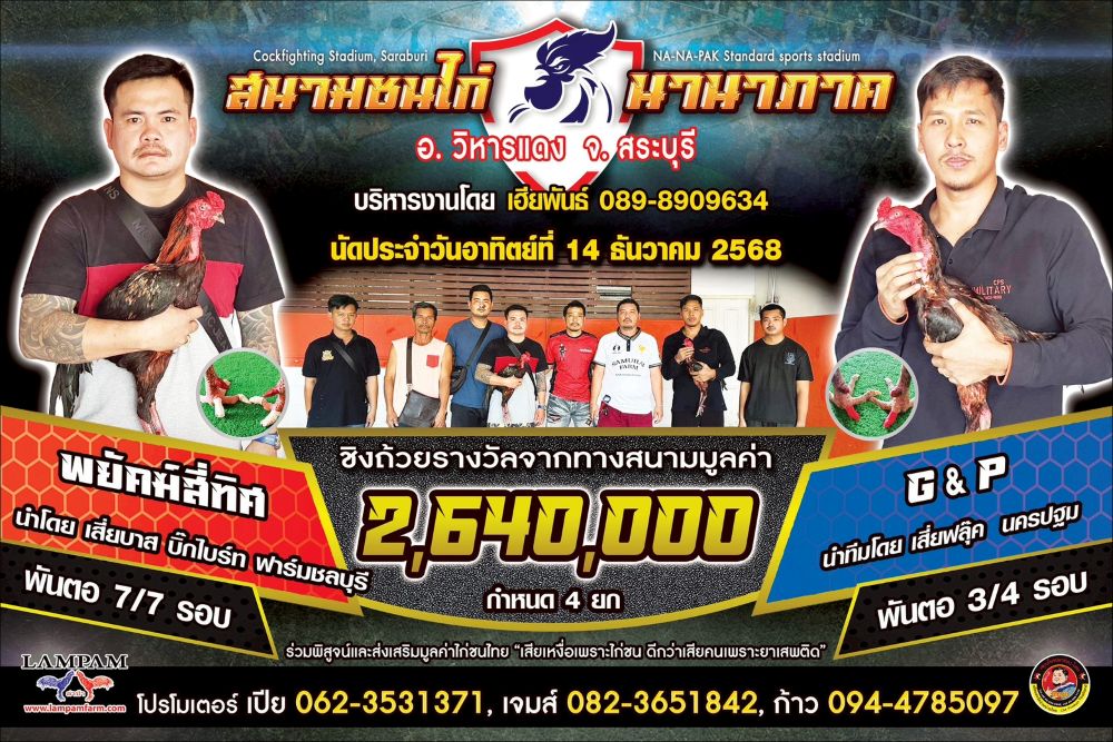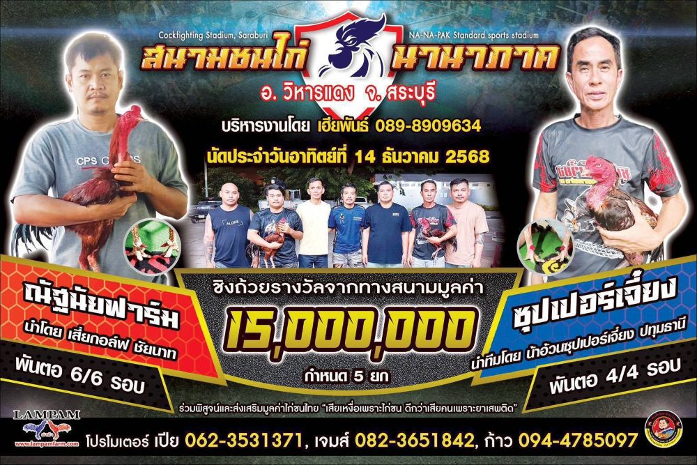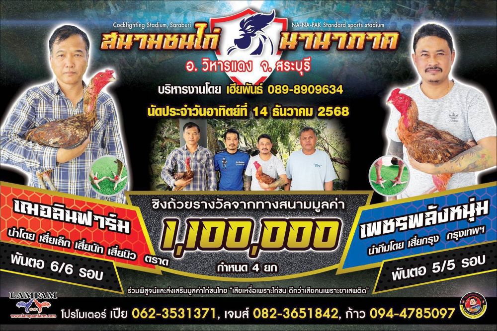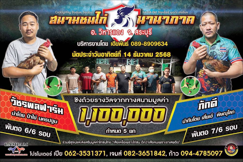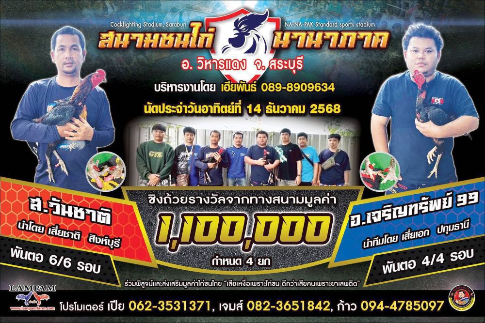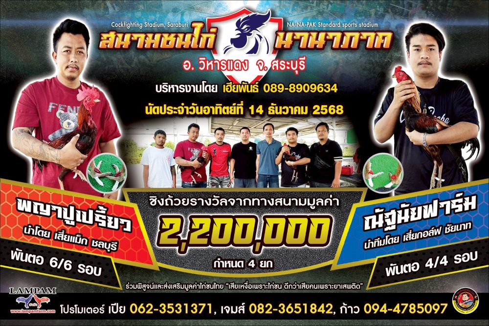 โปรแกรม สนามชนไก่นานาภาควิหารแดง วันอาทิตย์ที่ 14 ธันวาคน 2568