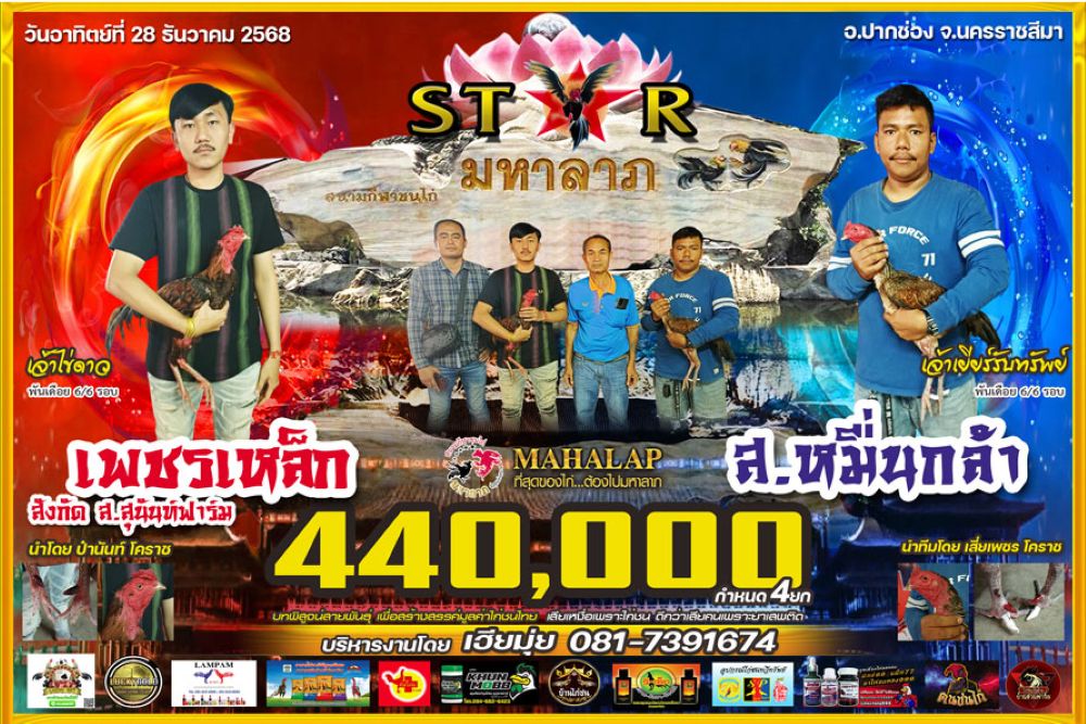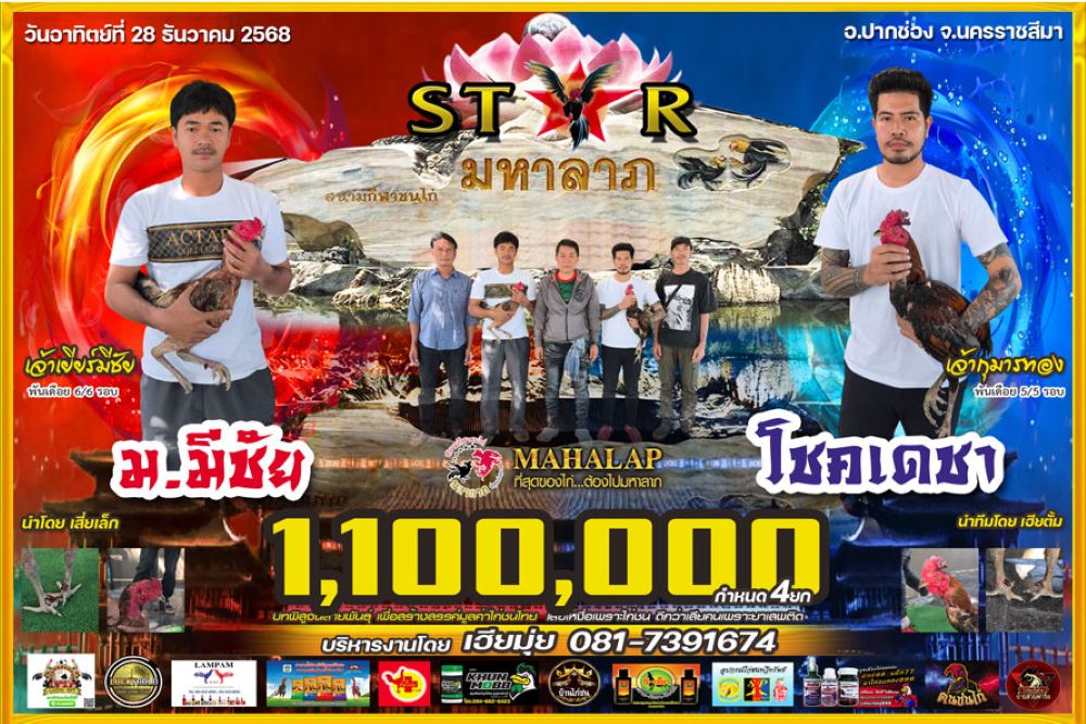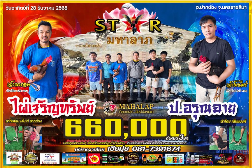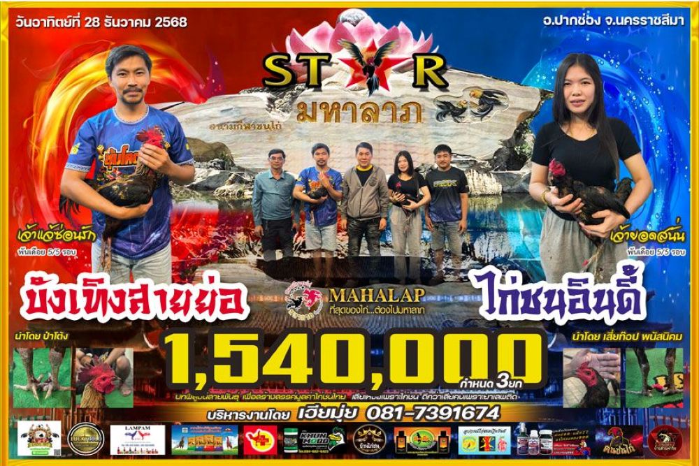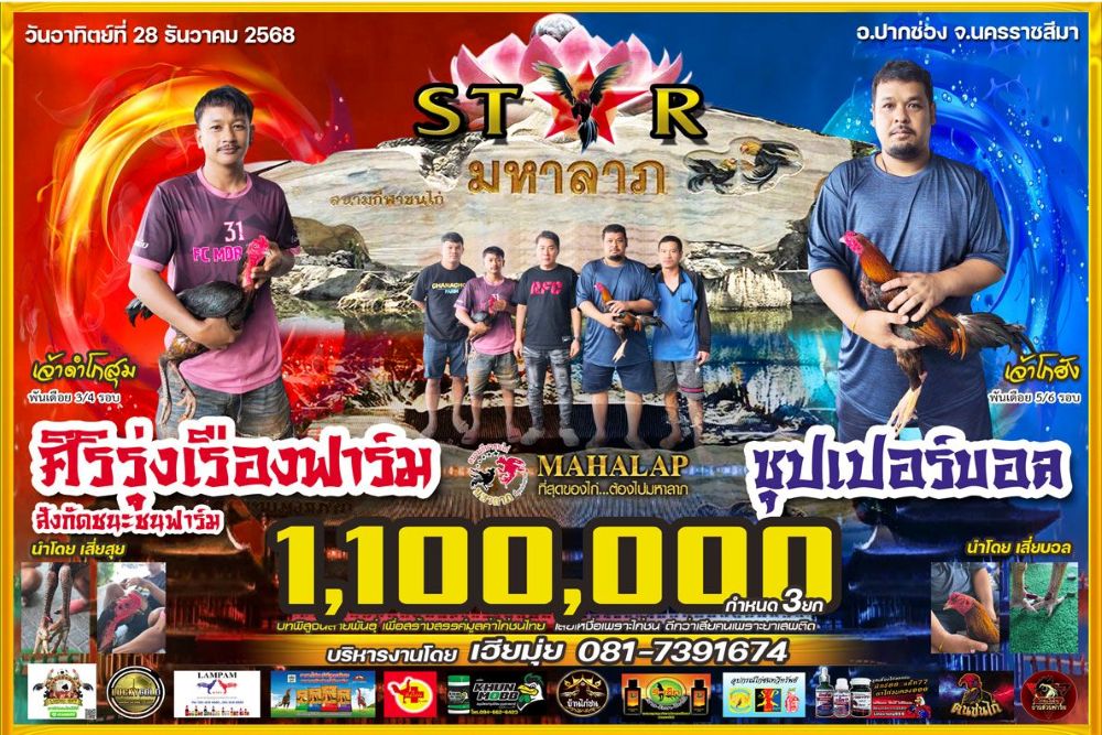 โปรแกรม สนามชนไก่มหาลาภ วันอาทิตย์ที่ 28 ธันวาคน 2568