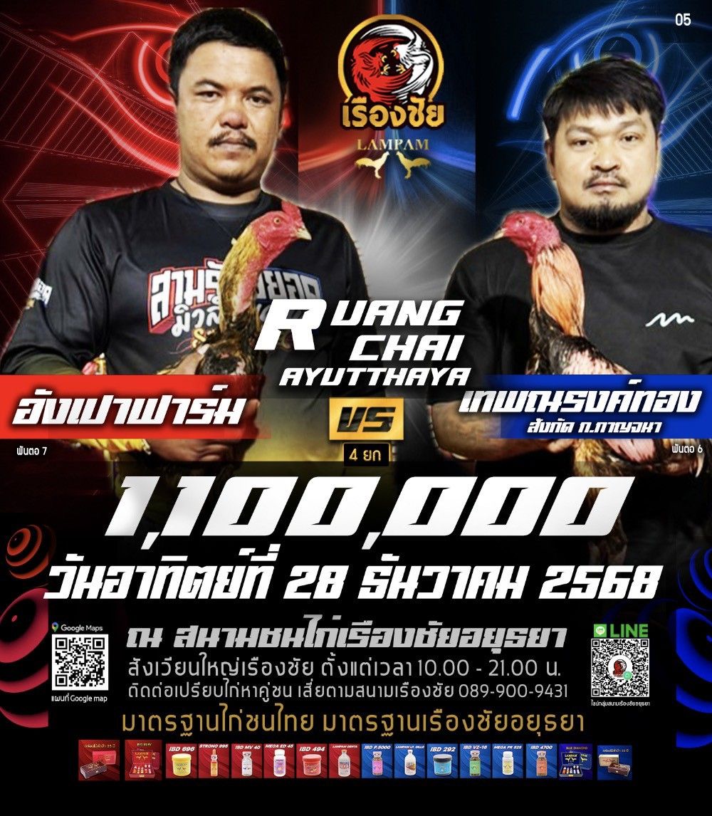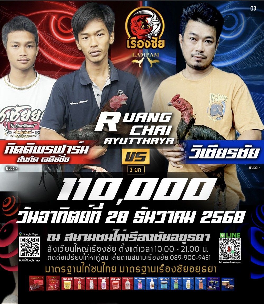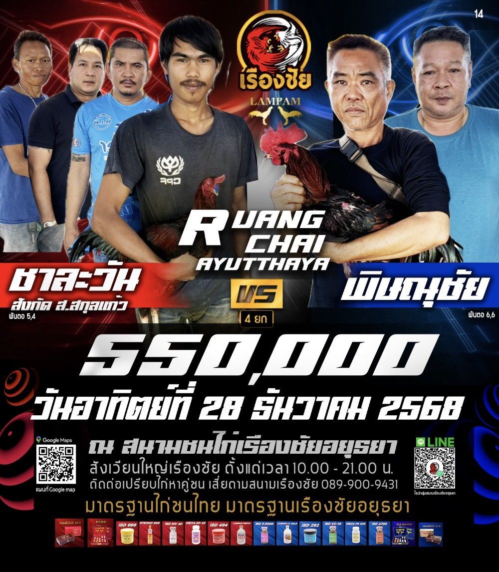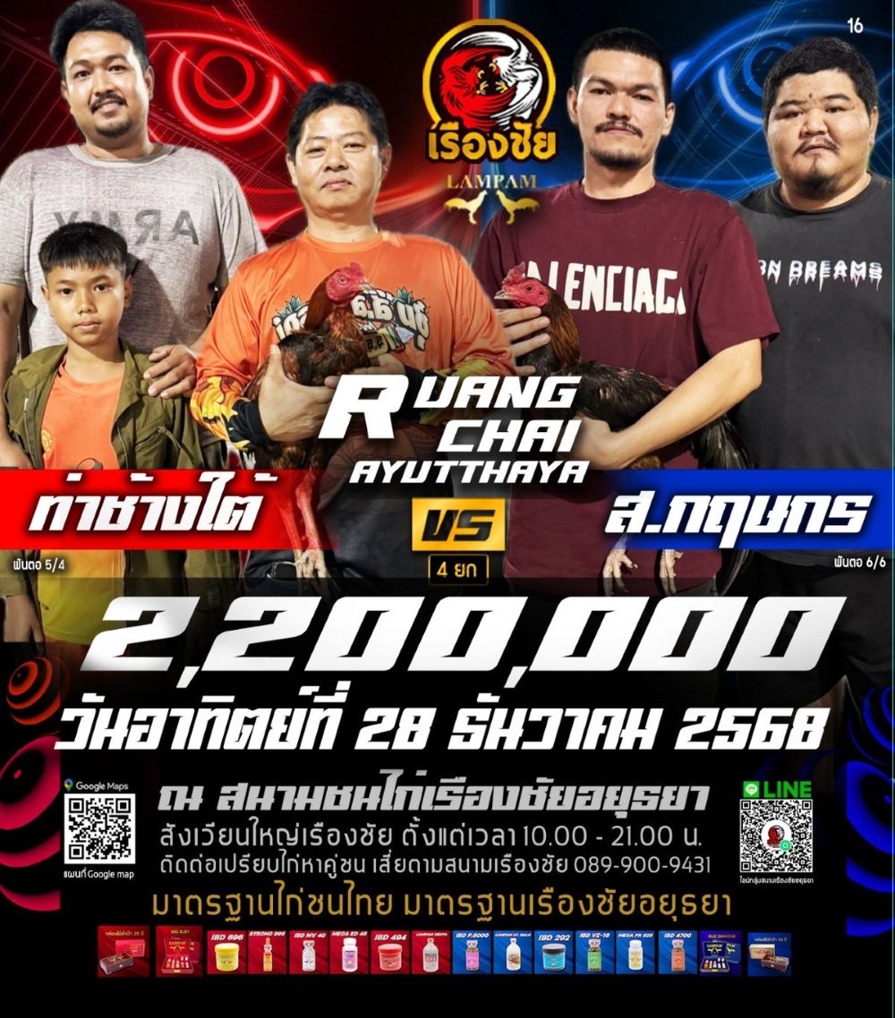 โปรแกรม สนามชนไก่เรืองชัย วันอาทิตย์ที่ 28 ธันวาคน 2568