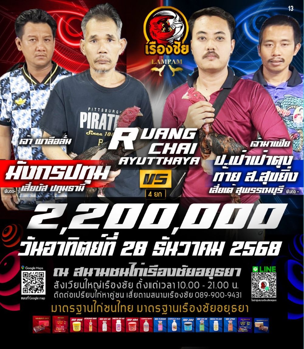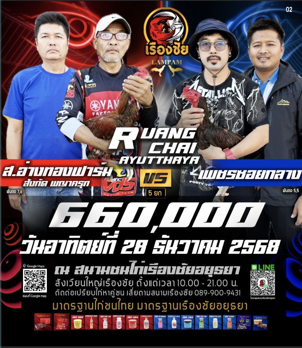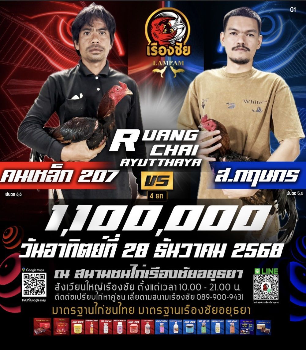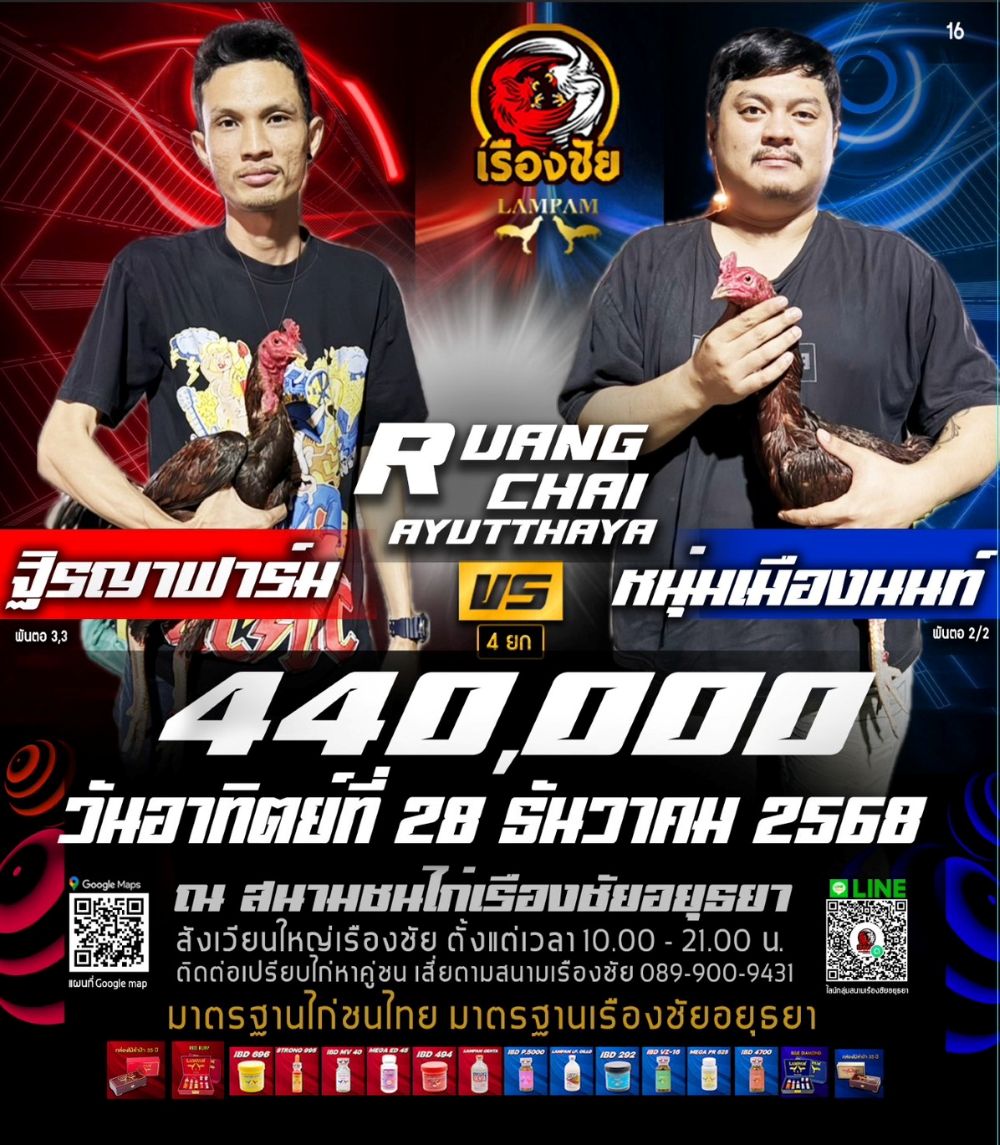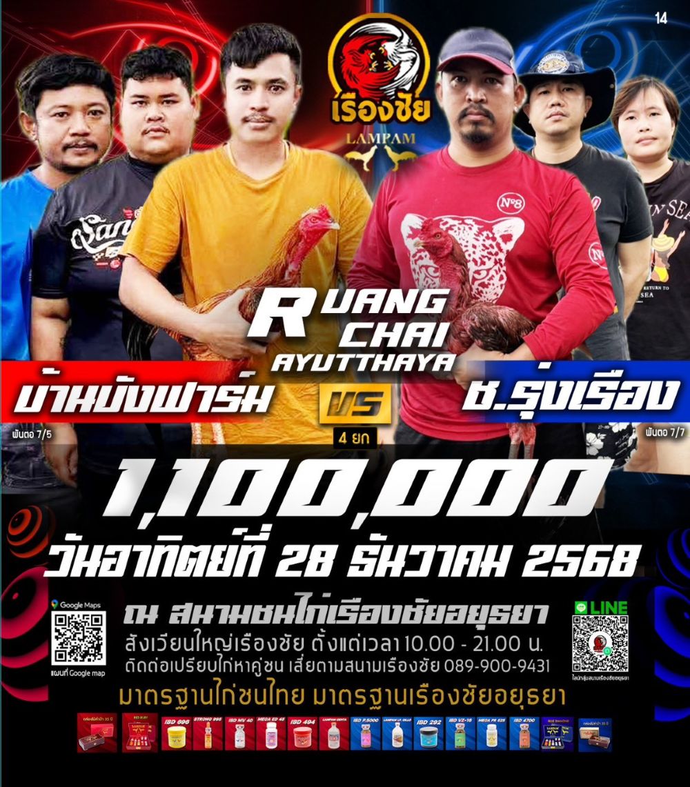 โปรแกรม สนามชนไก่เรืองชัย วันอาทิตย์ที่ 28 ธันวาคน 2568