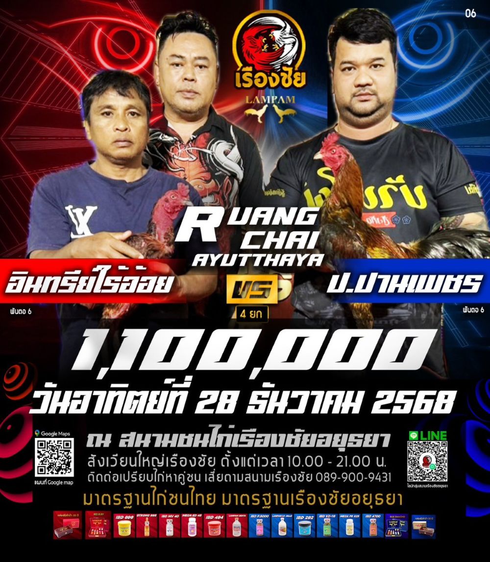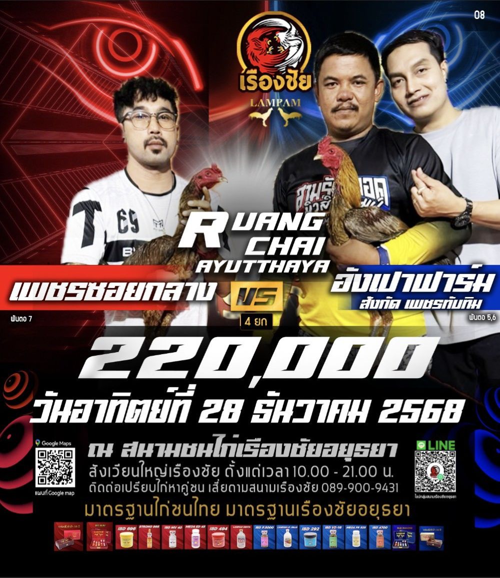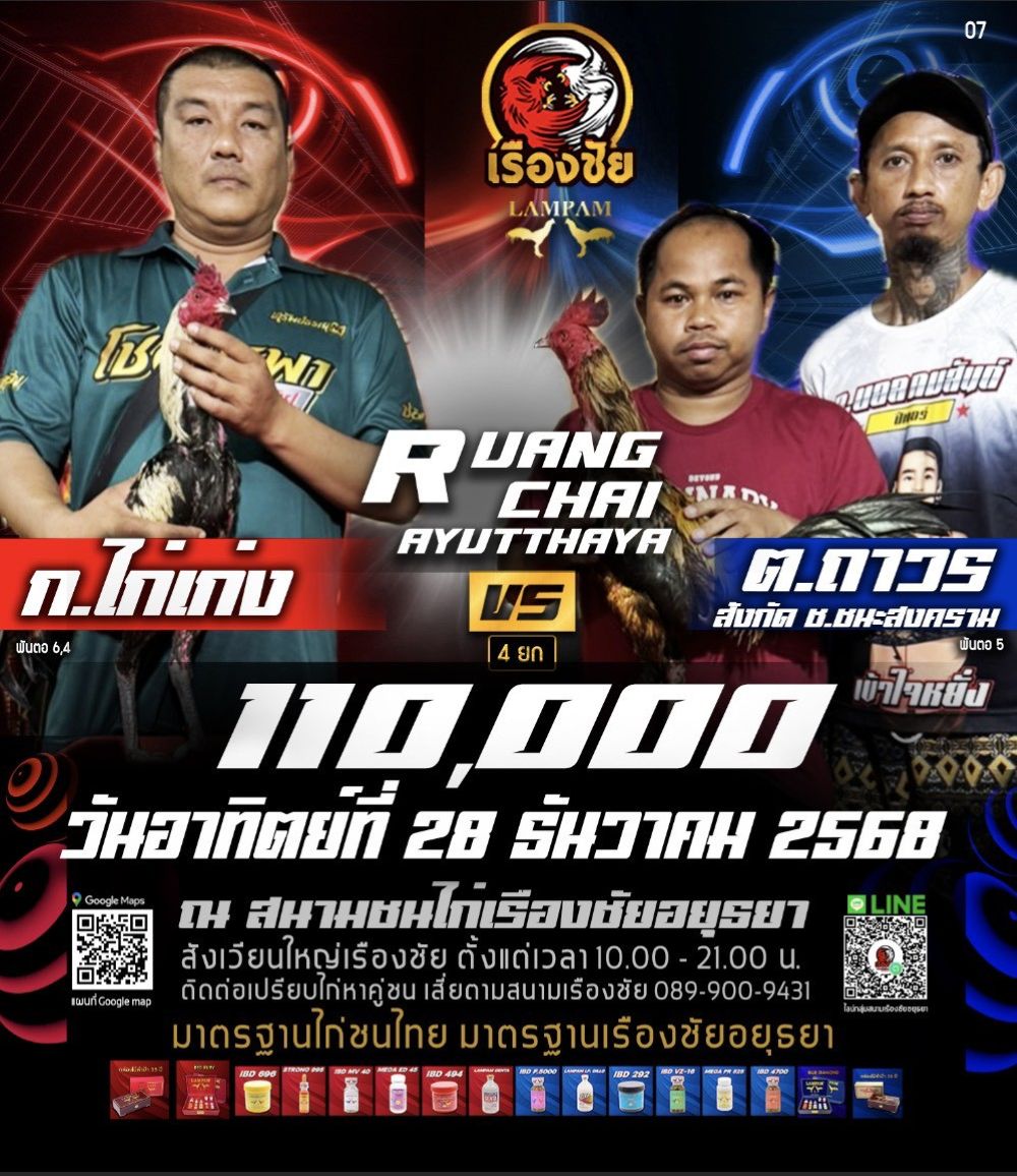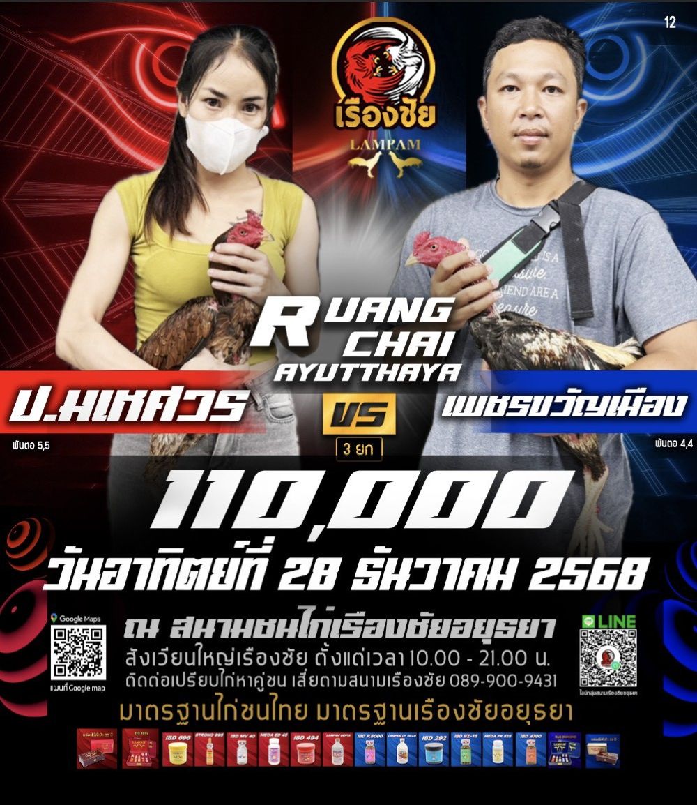 โปรแกรม สนามชนไก่เรืองชัย วันอาทิตย์ที่ 28 ธันวาคน 2568