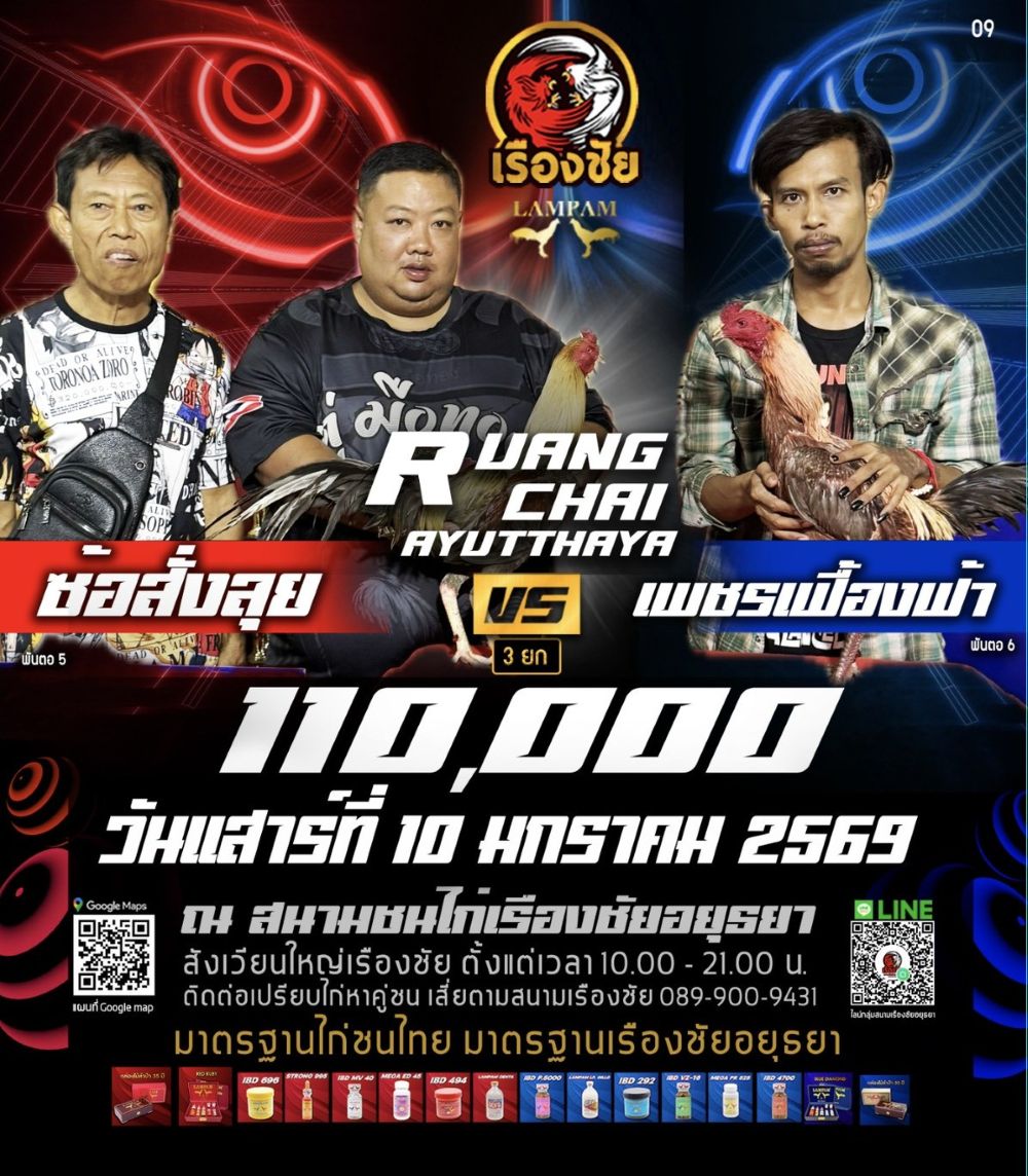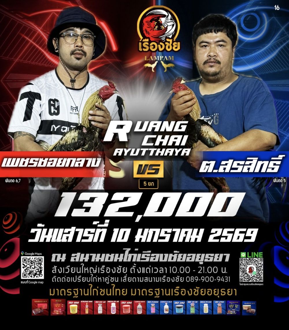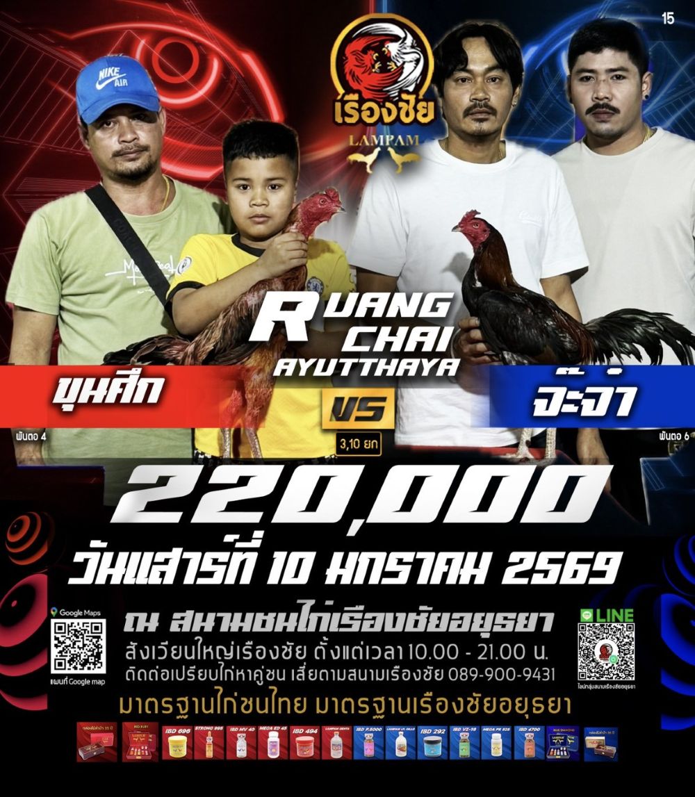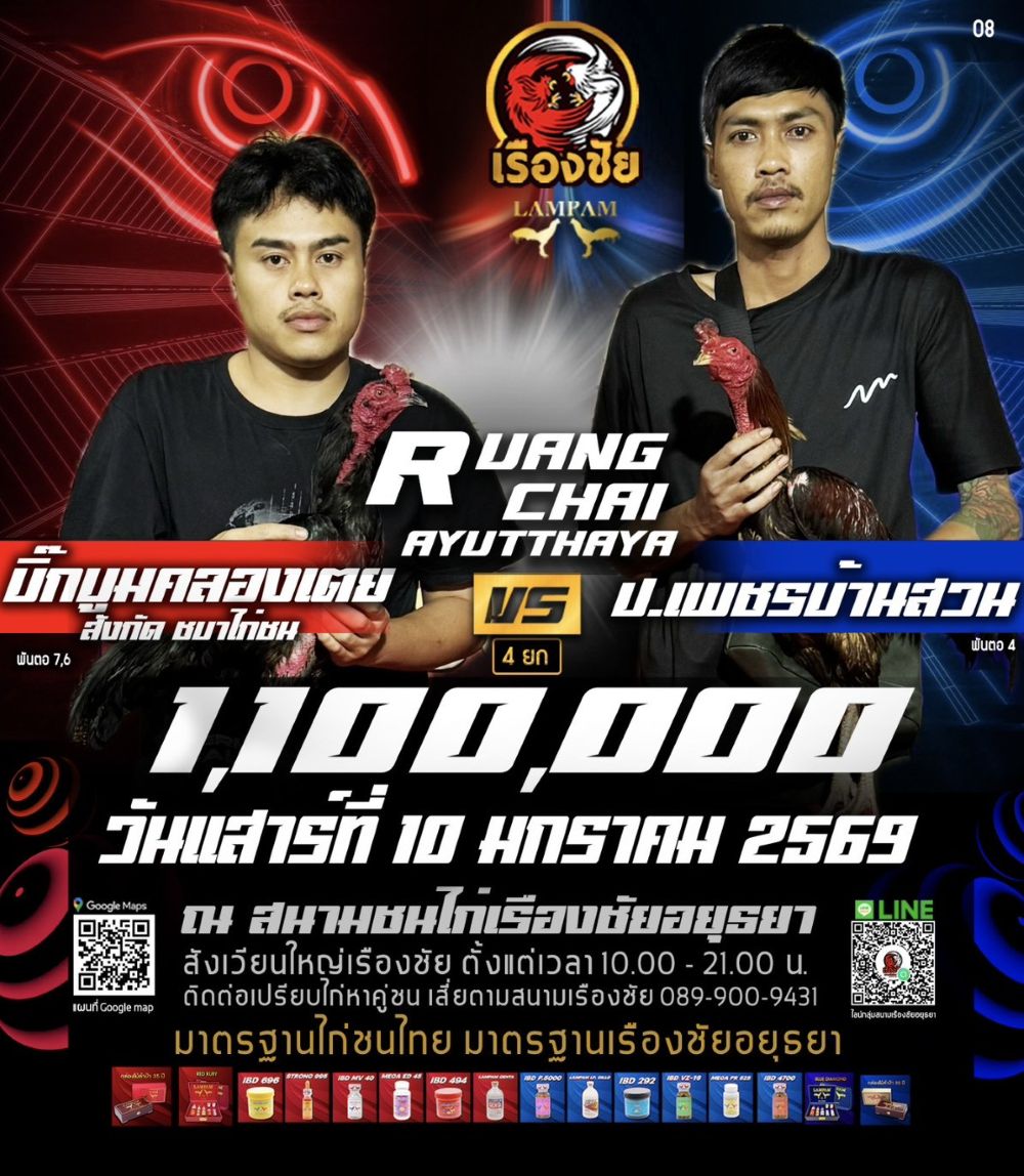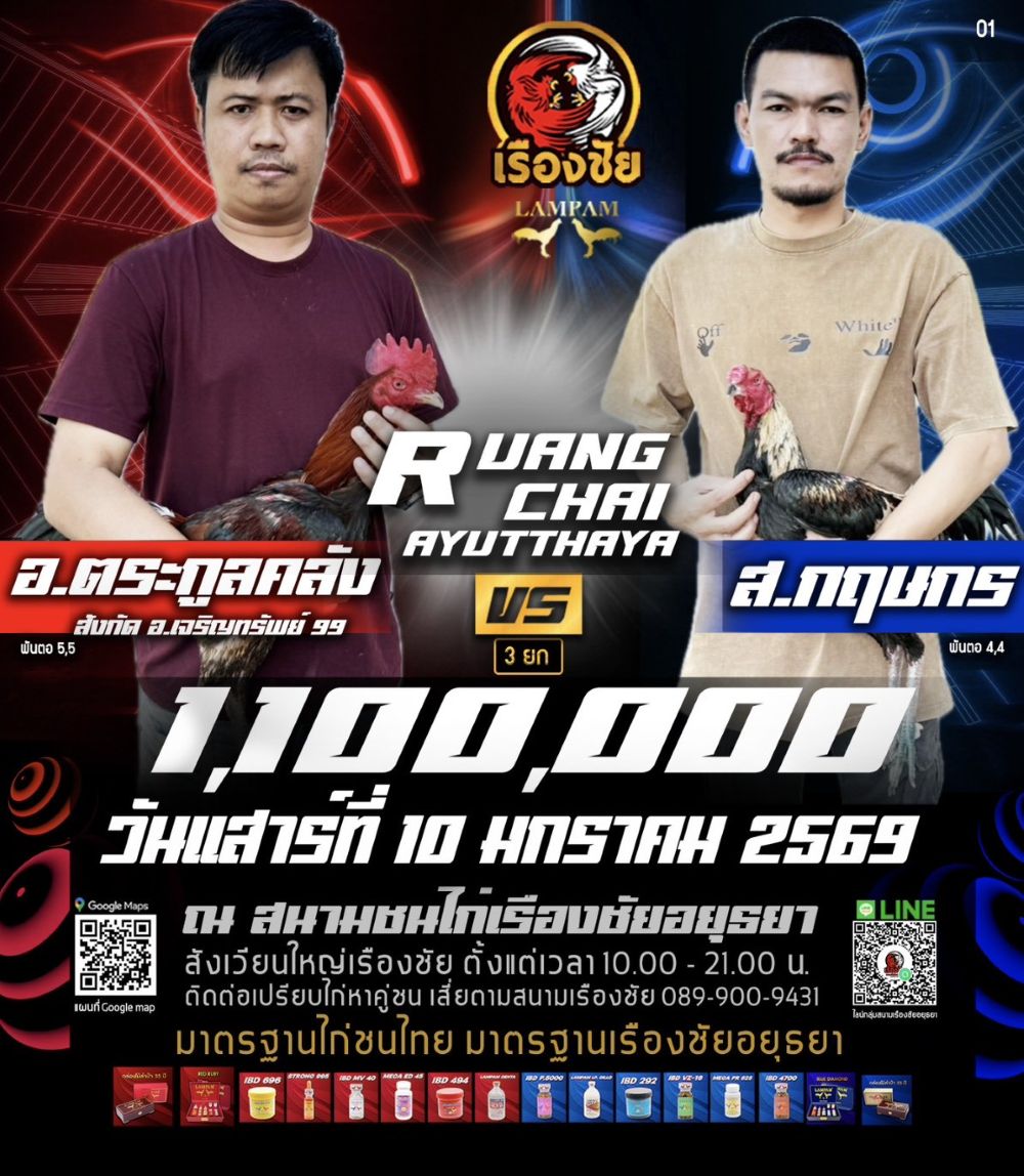โปรแกรม สนามชนไก่เรืองชัย วันเสาร์ที่ 10 มกราคม 2568