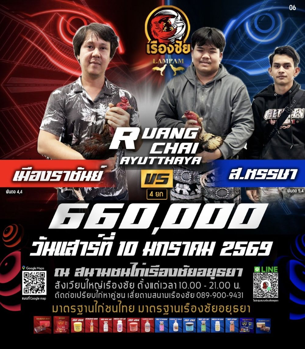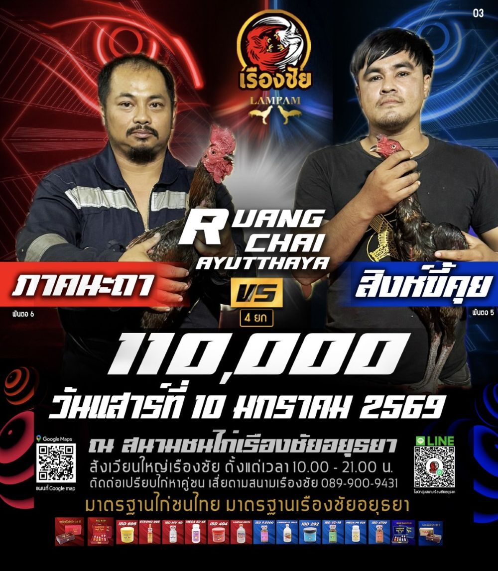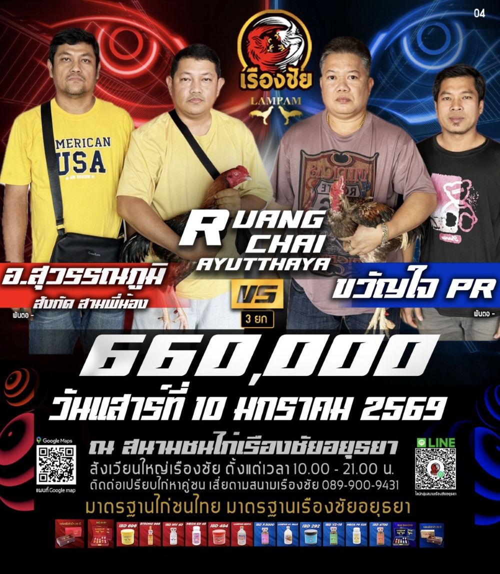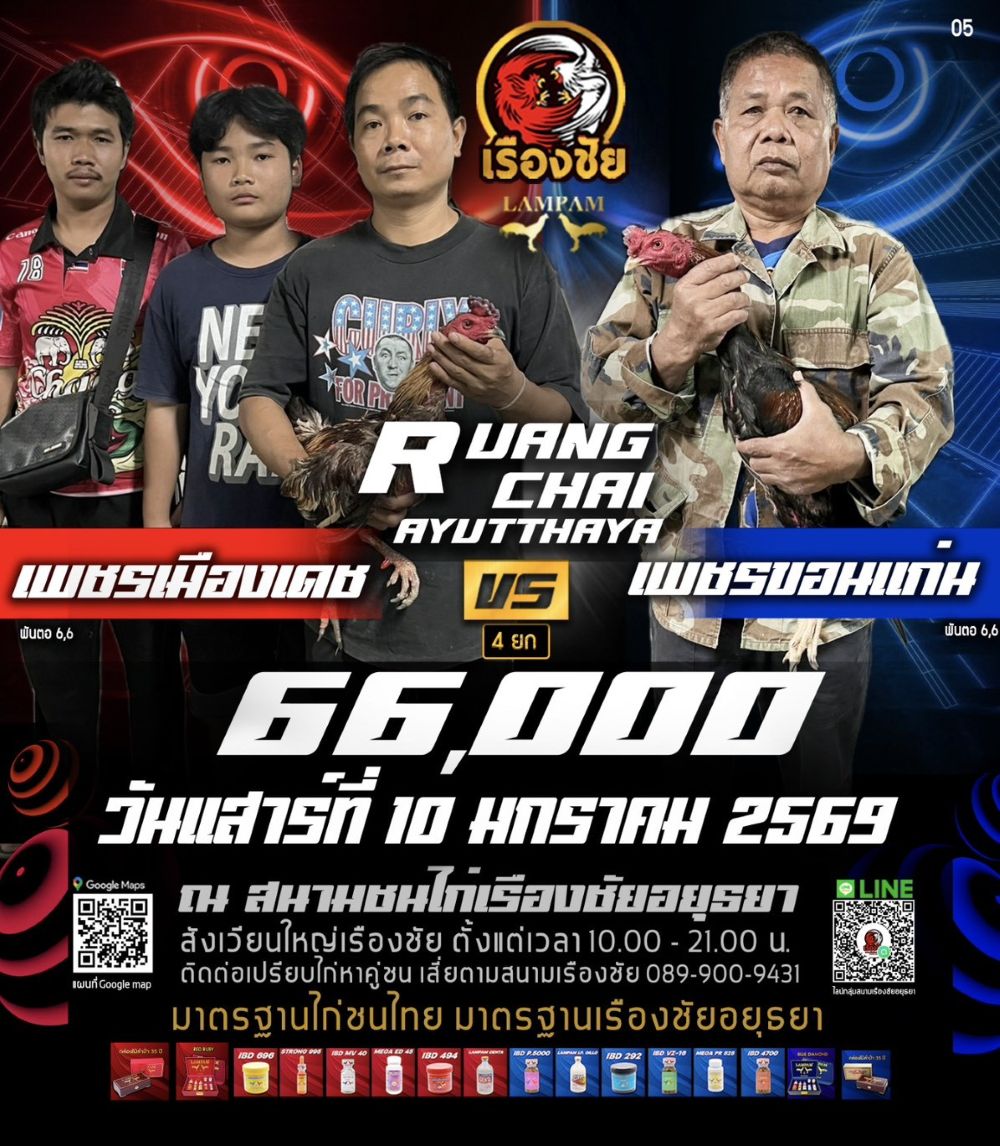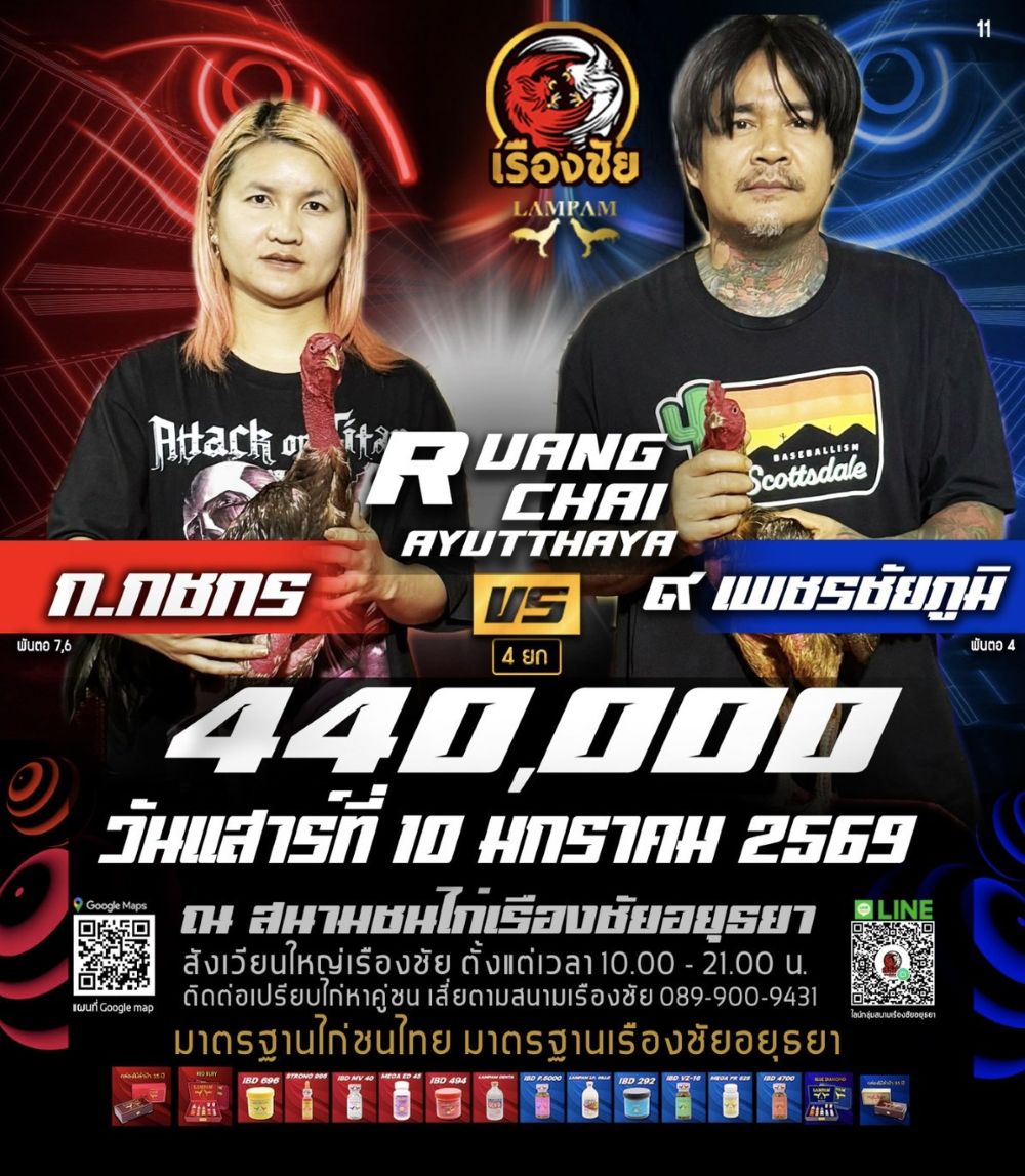 โปรแกรม สนามชนไก่เรืองชัย วันเสาร์ที่ 10 มกราคม 2568