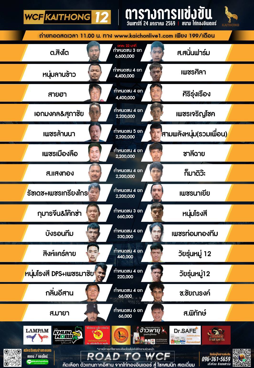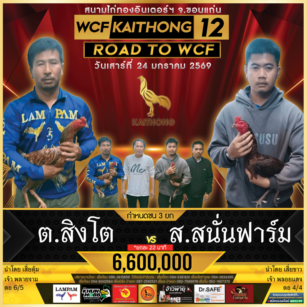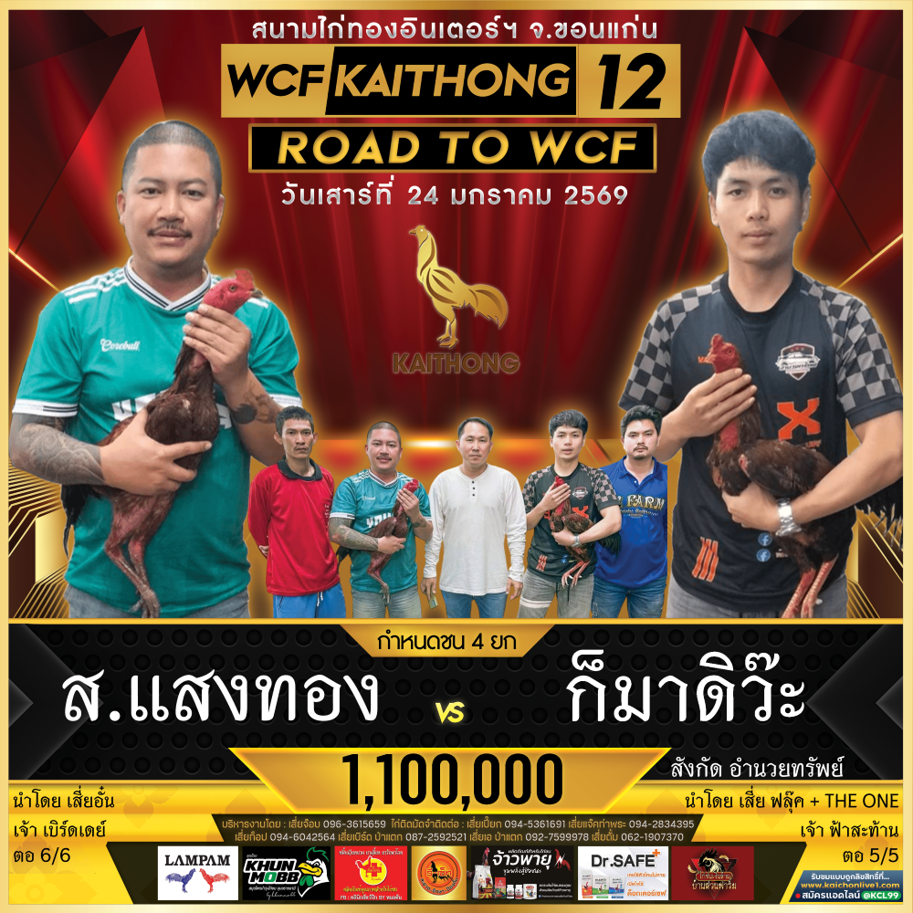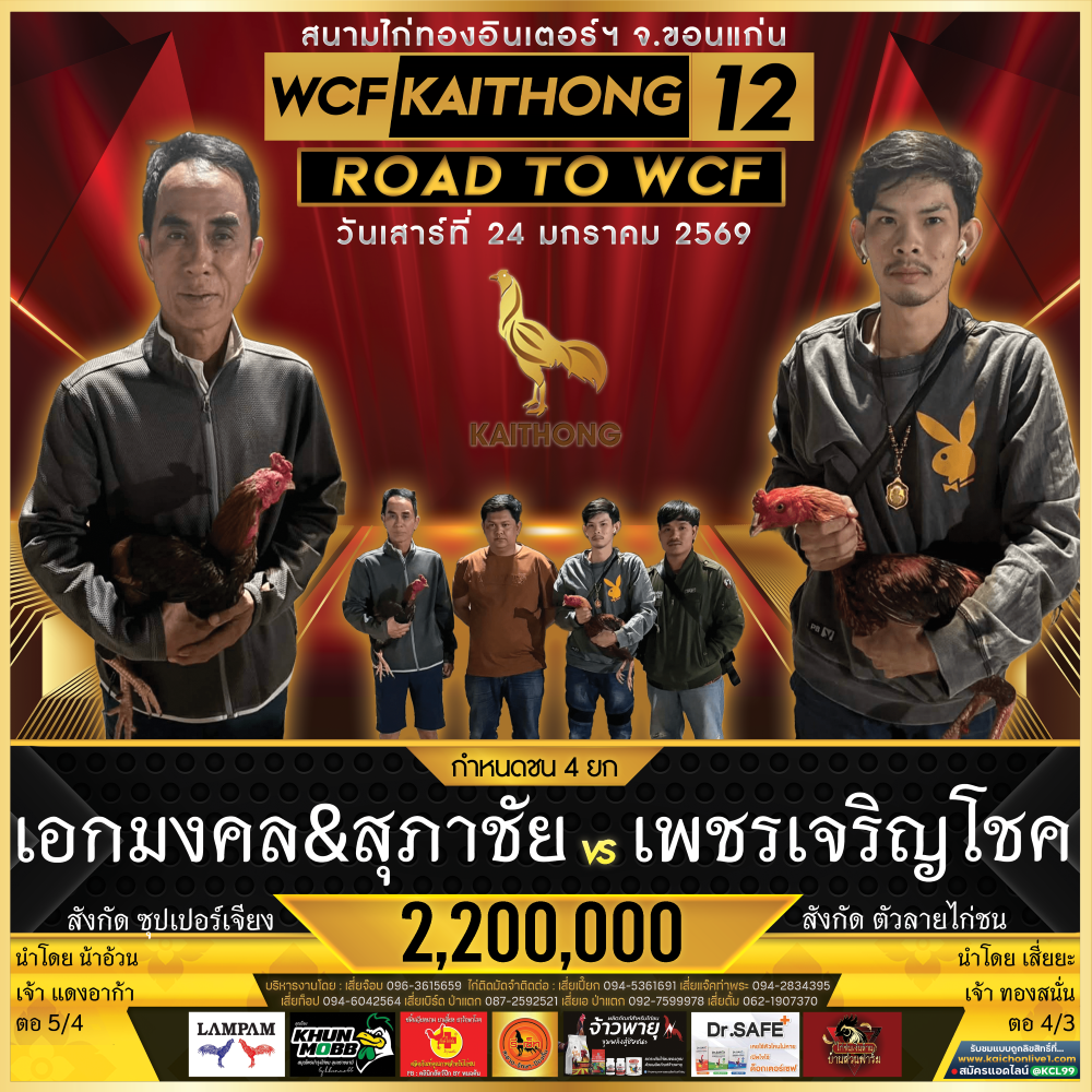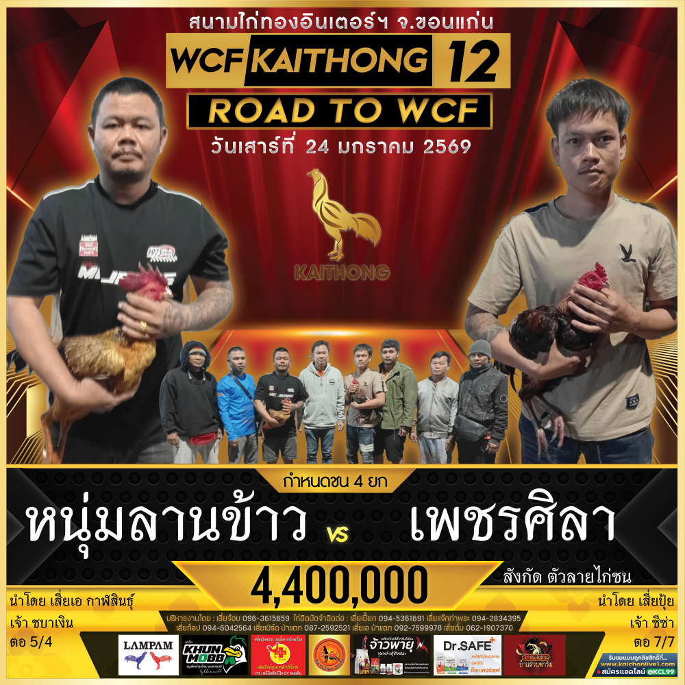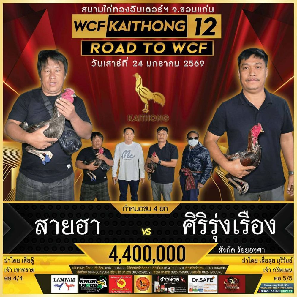 โปรแกรม สนามชนไก่ไก่ทองอินเตอร์ฯ วันเสาร์ที่ 24 มกราคม 2569