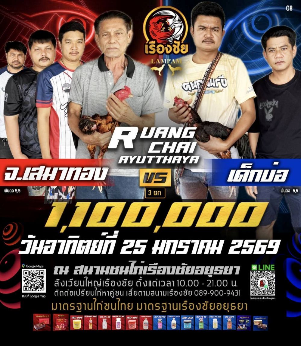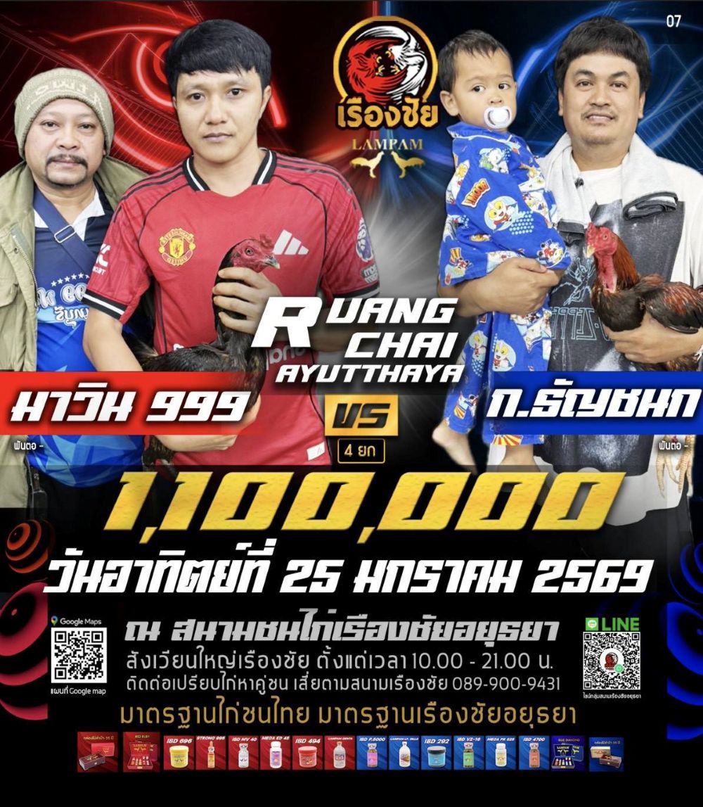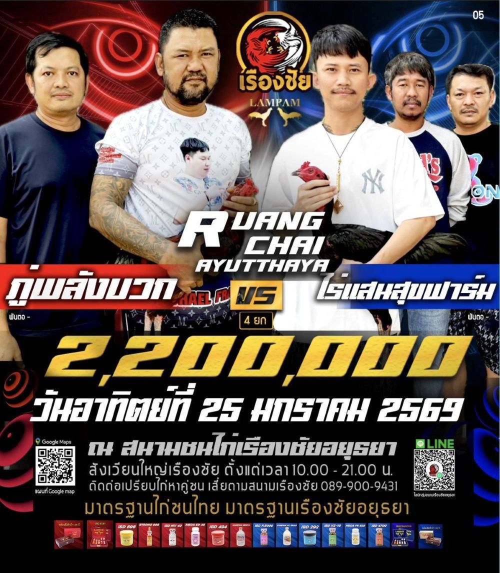 โปรแกรม สนามชนไก่เรืองชัย วันอาทิตย์ที่ 25 มกราคม 2568