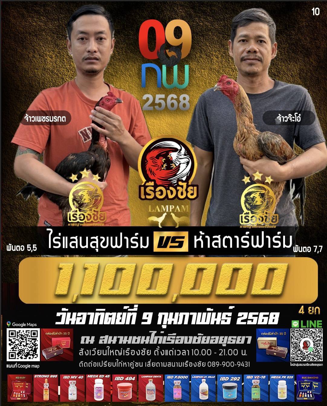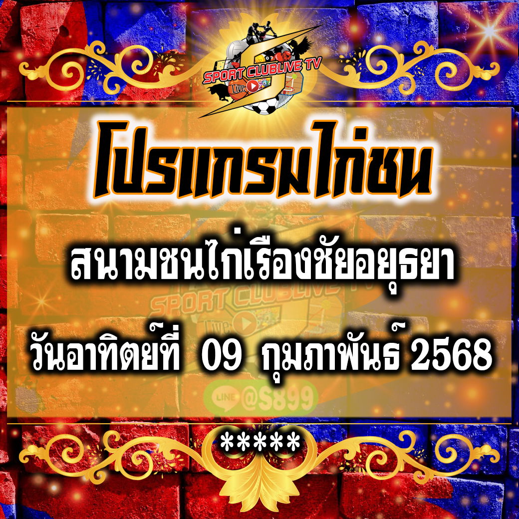 โปรแกรม สนามชมไก่เรืองชัยอยุธยา วันอาทิตย์ที่ 09 กุมภาพันธ์ 2568